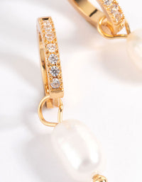 Waterproof Gold Plated Stainless Steel Diamante Freshwater Pearl Drop Huggie Earrings