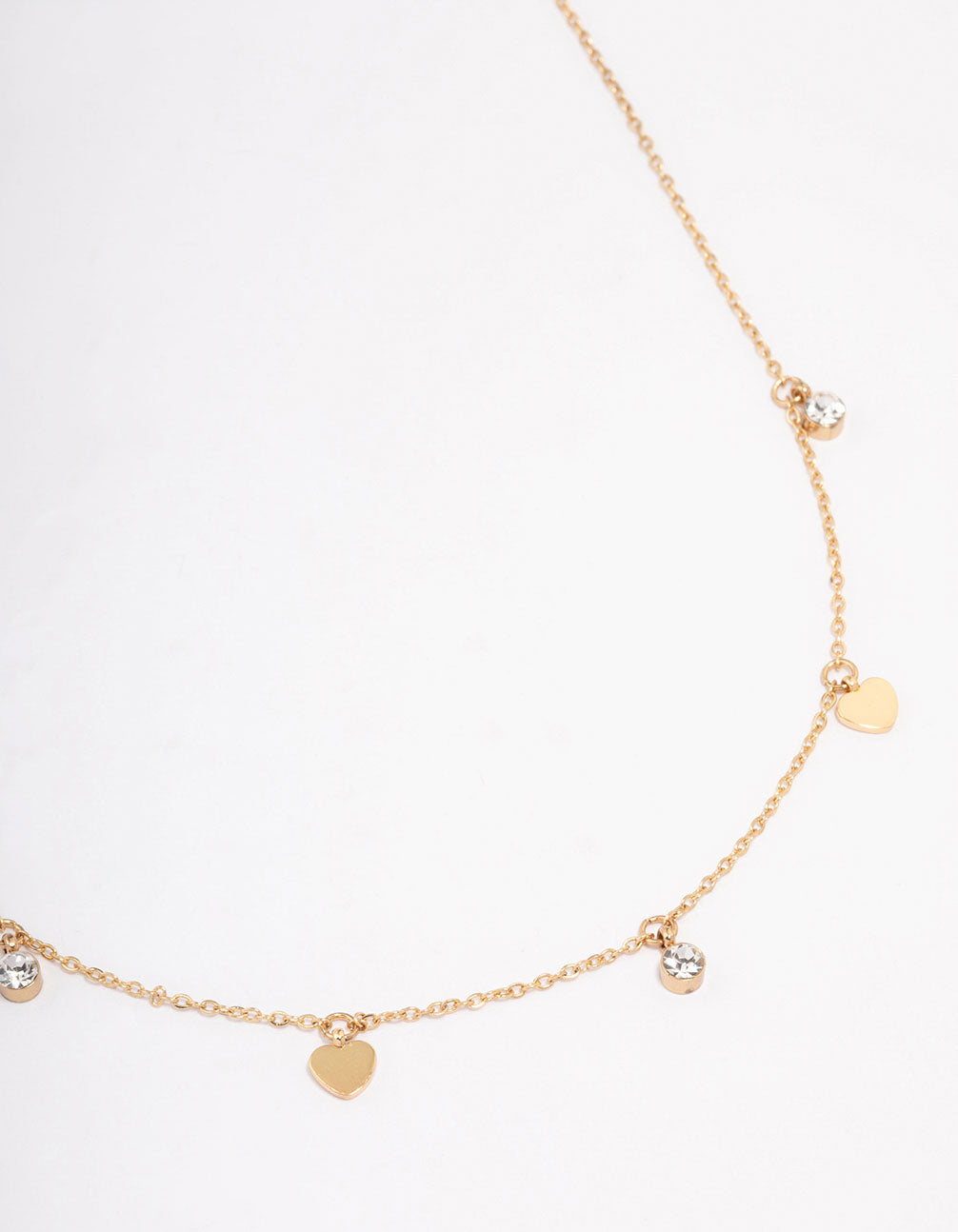 Waterproof Gold Plated Stainless Steel Diamante & Heart Droplet Short Necklace
