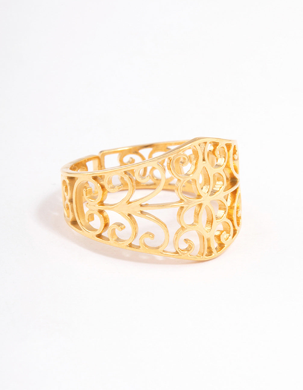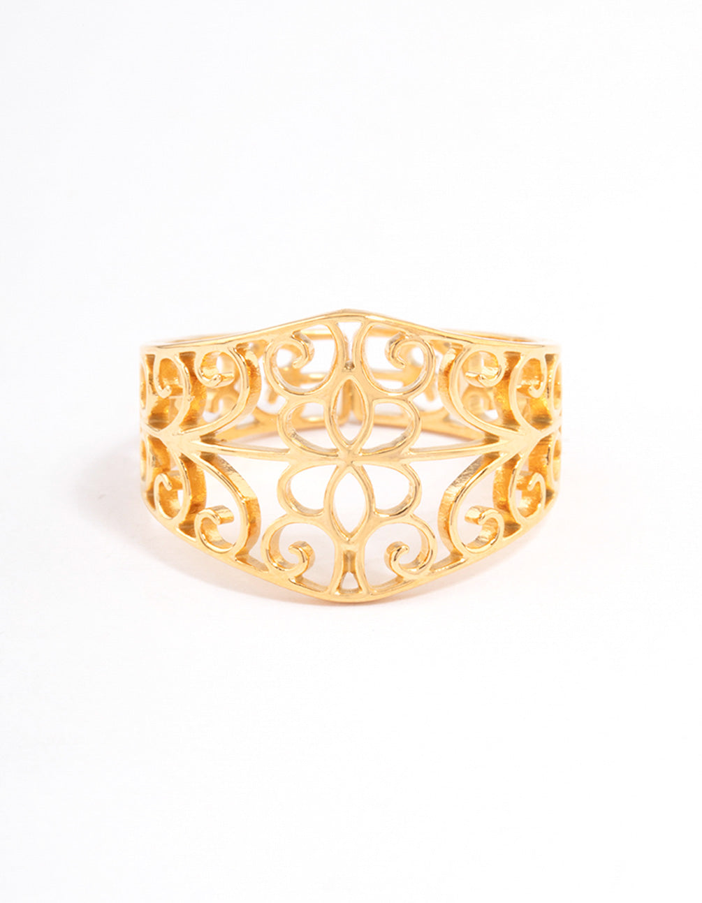 Waterproof Gold Plated Stainless Steel Fine Swirl Filigree Ring Waterproof Gold Plated Stainless Steel Fine Swirl Filigree Ring