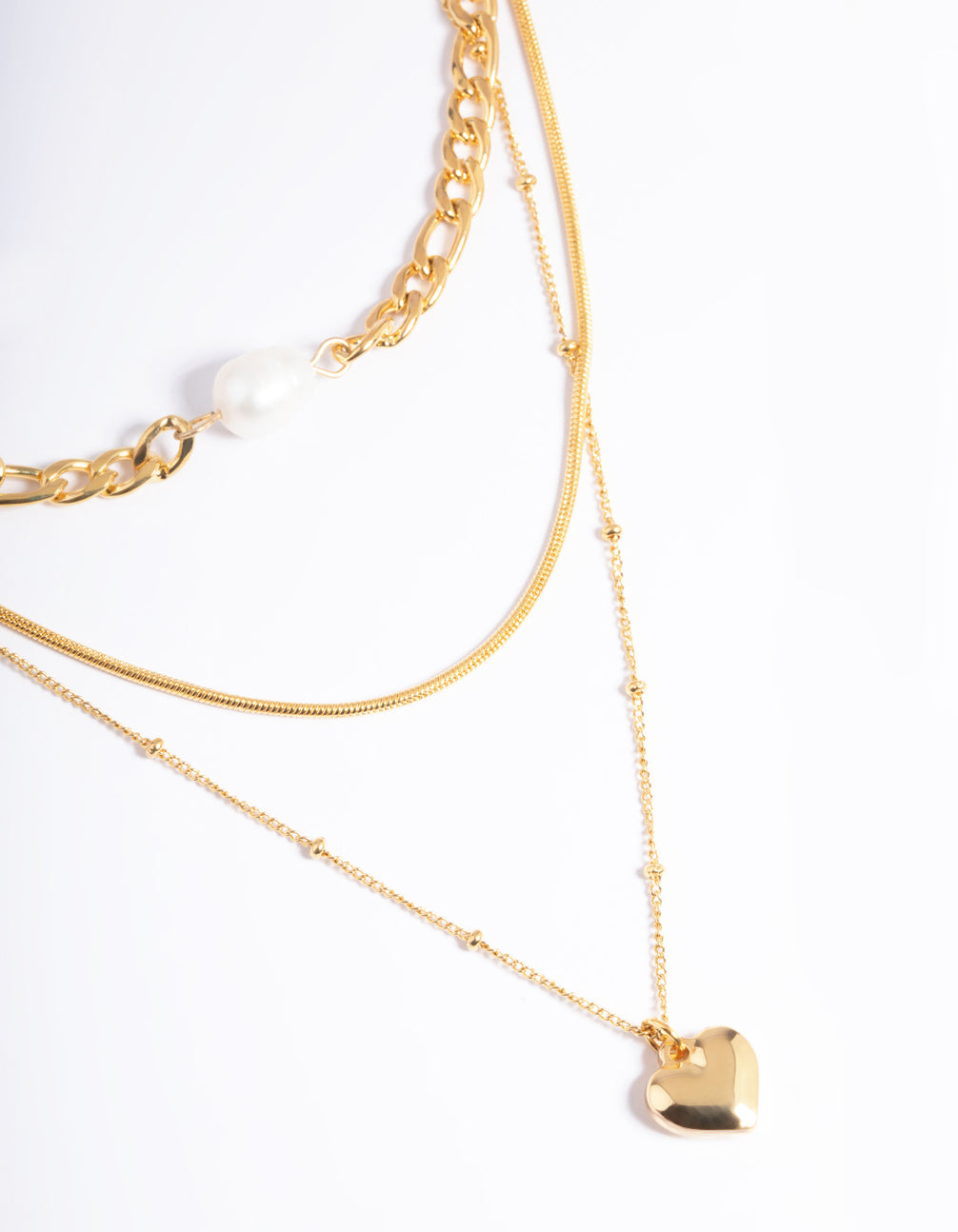 Waterproof Gold Plated Stainless Steel Heart & Freshwater Pearl Layered Necklace