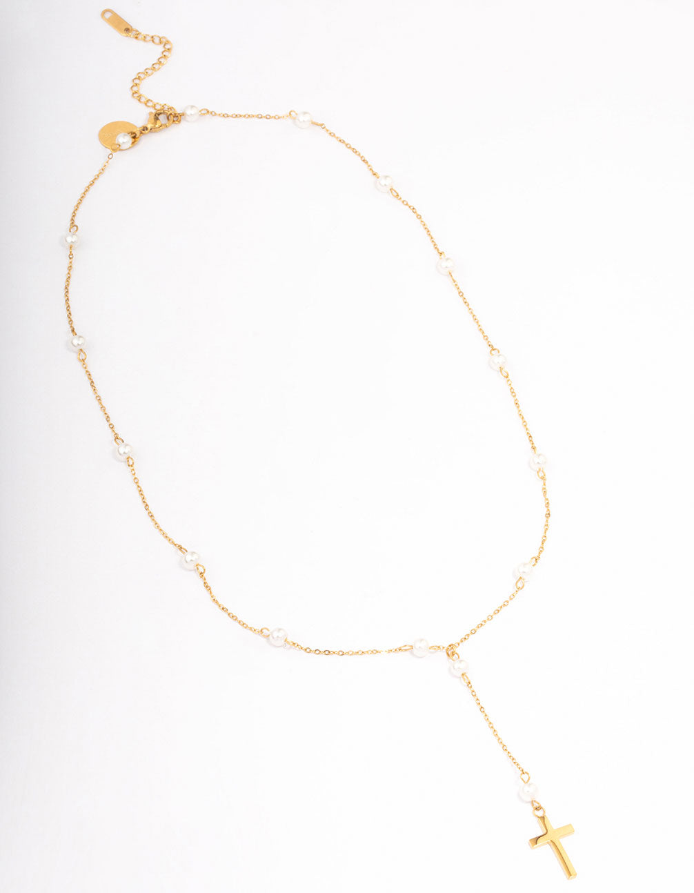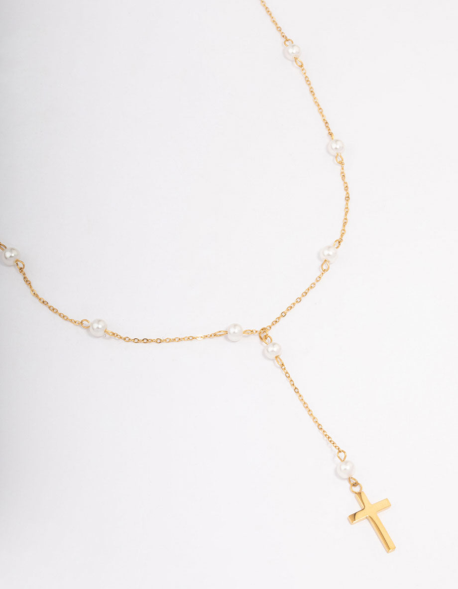 Waterproof Gold Plated Stainless Steel Pearl Station Cross Necklace Waterproof Gold Plated Stainless Steel Pearl Station Cross Necklace Waterproof Gold Plated Stainless Steel Pearl Station Cross Necklace