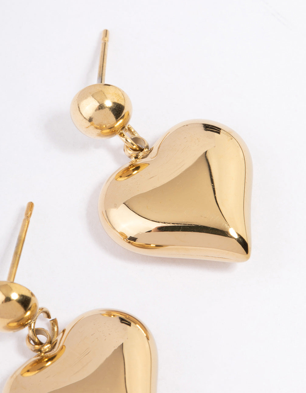Waterproof Gold Plated Stainless Steel Round & Puffy Heart Drop Earrings
