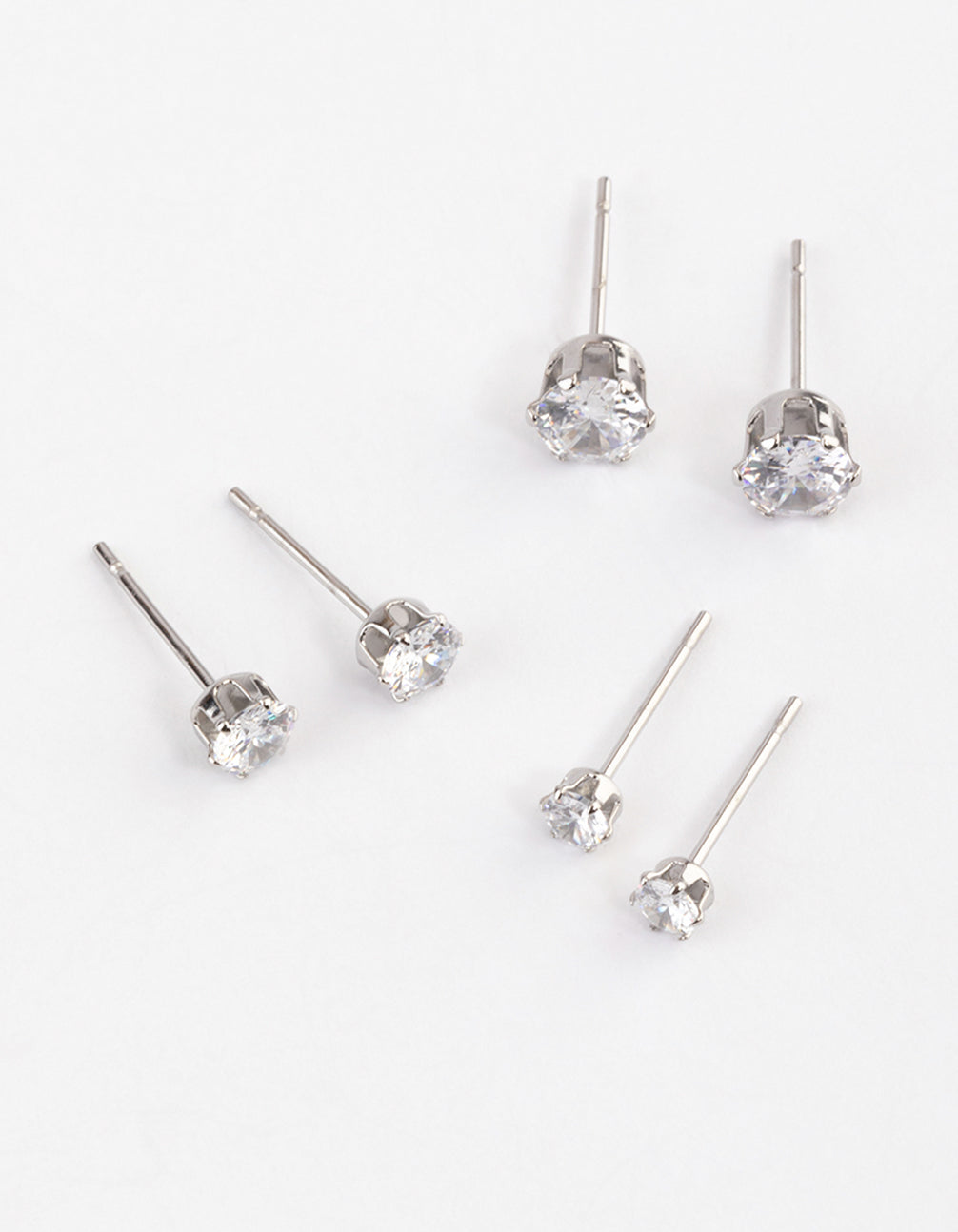 Waterproof Stainless Steel Cubic Zirconia Stud Earrings Pack