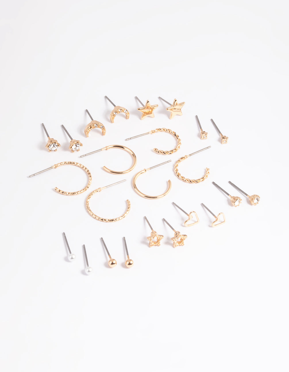 Mix them, match them, stack them! Our adorable earring packs feature a variety of designs. Layer different styles together in a curated ear, or mix it up and wear a different one in each ear. Cute!