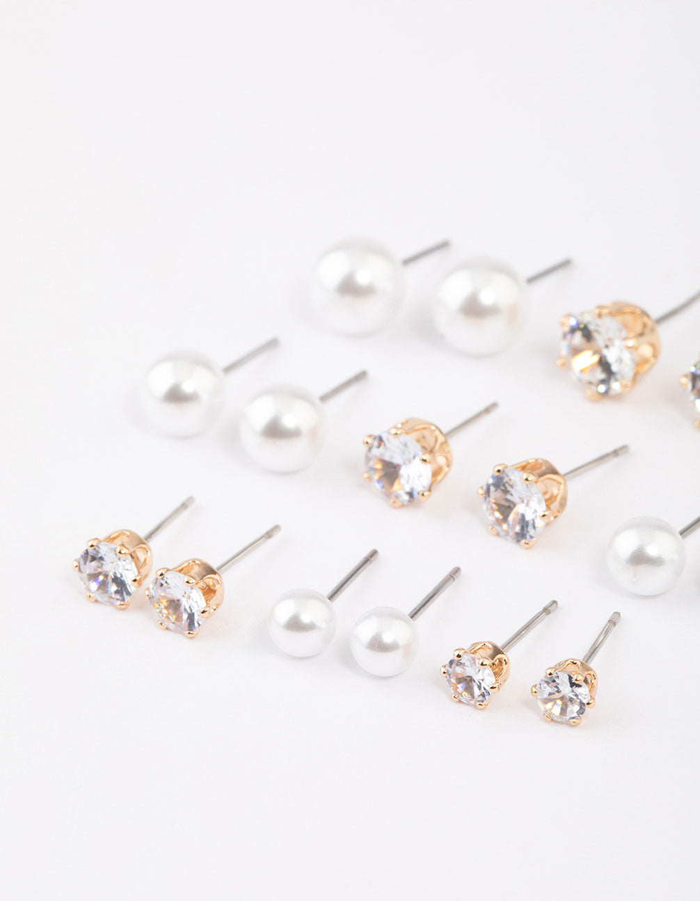 - Customise your look with this set of eight earrings, designed with a gorgeous gold-toned setting and embellished with graduating diamantes and pearls for a sophisticated look.