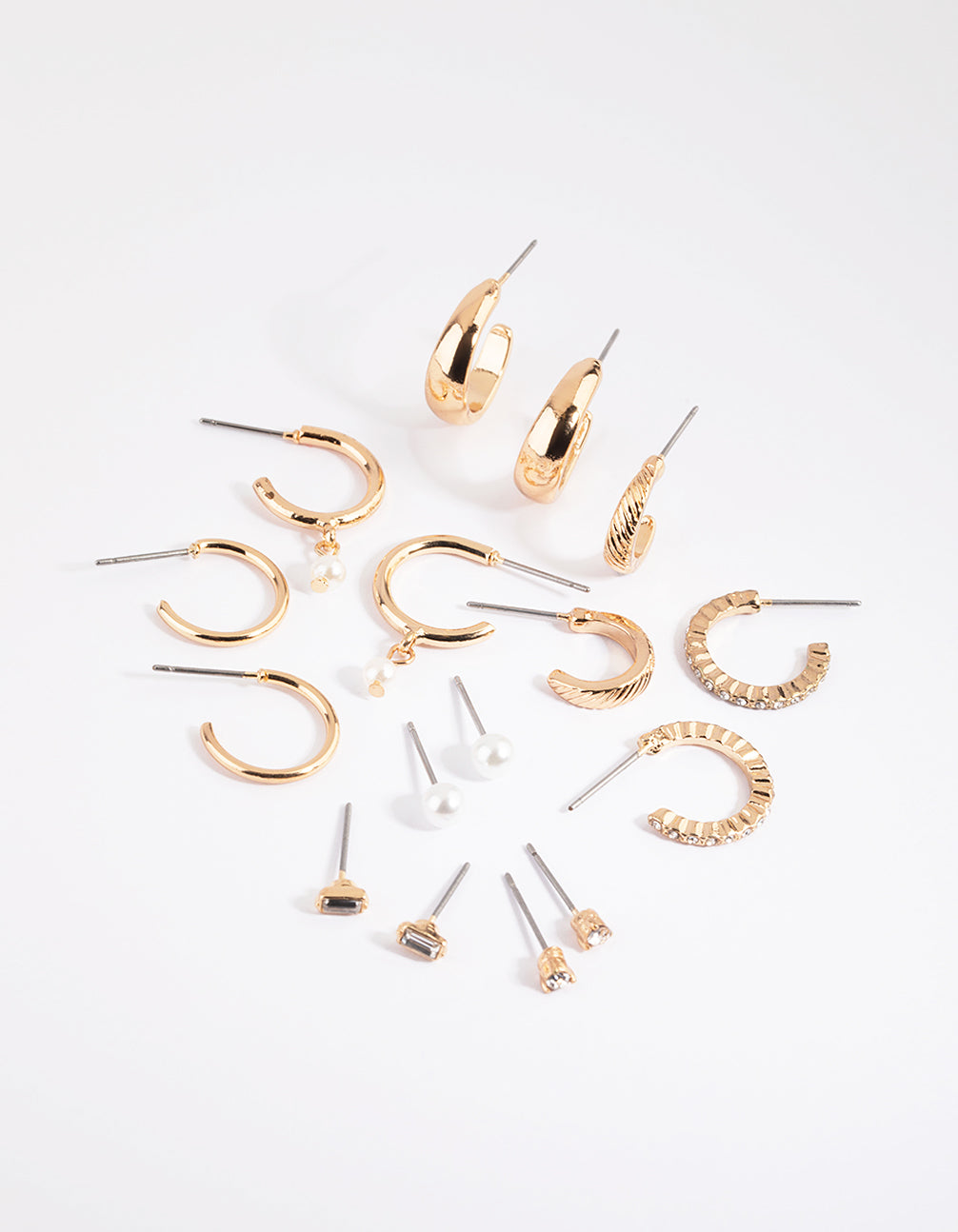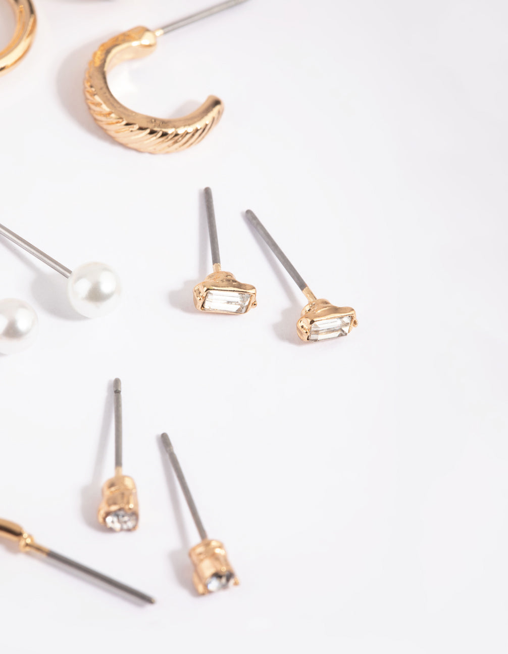 Gold Pearl Stud & Hoop Earring 8-Pack
