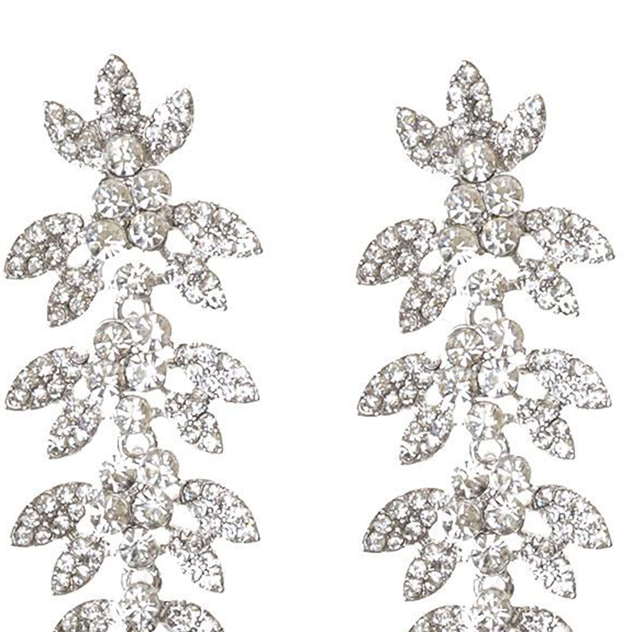 SHINY SILVER TONE VINTAGE DROP DIAMANTE CLUSTER 8CM Earrings