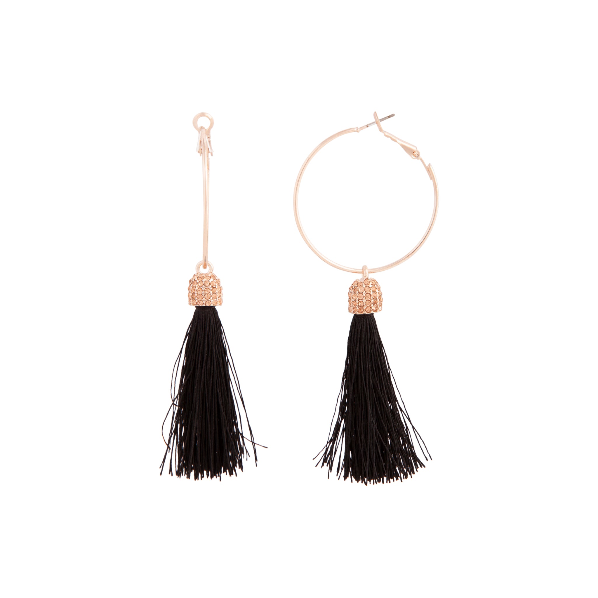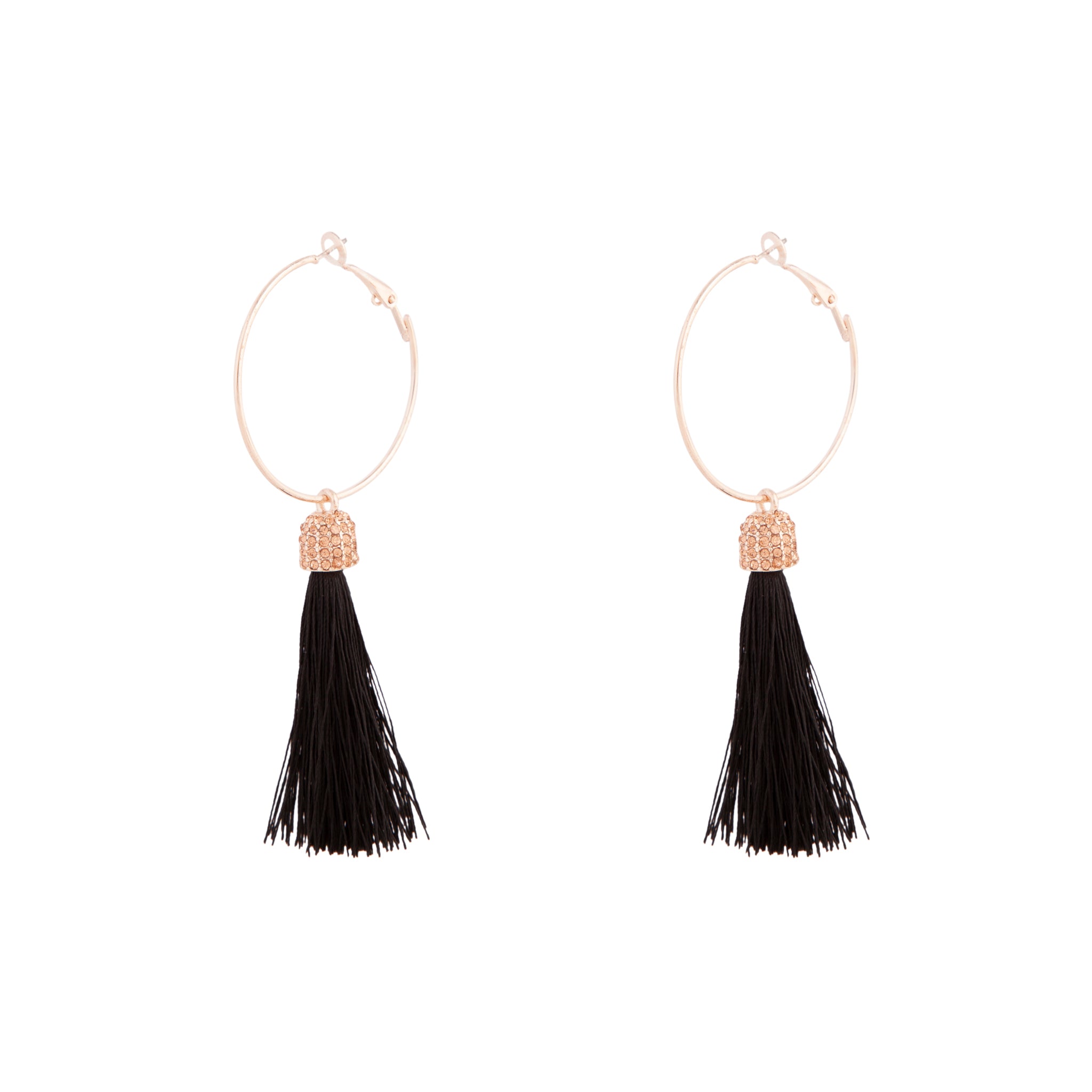 This rose-gold-toned hoop boasts a gorgeous black and diamante tassel.