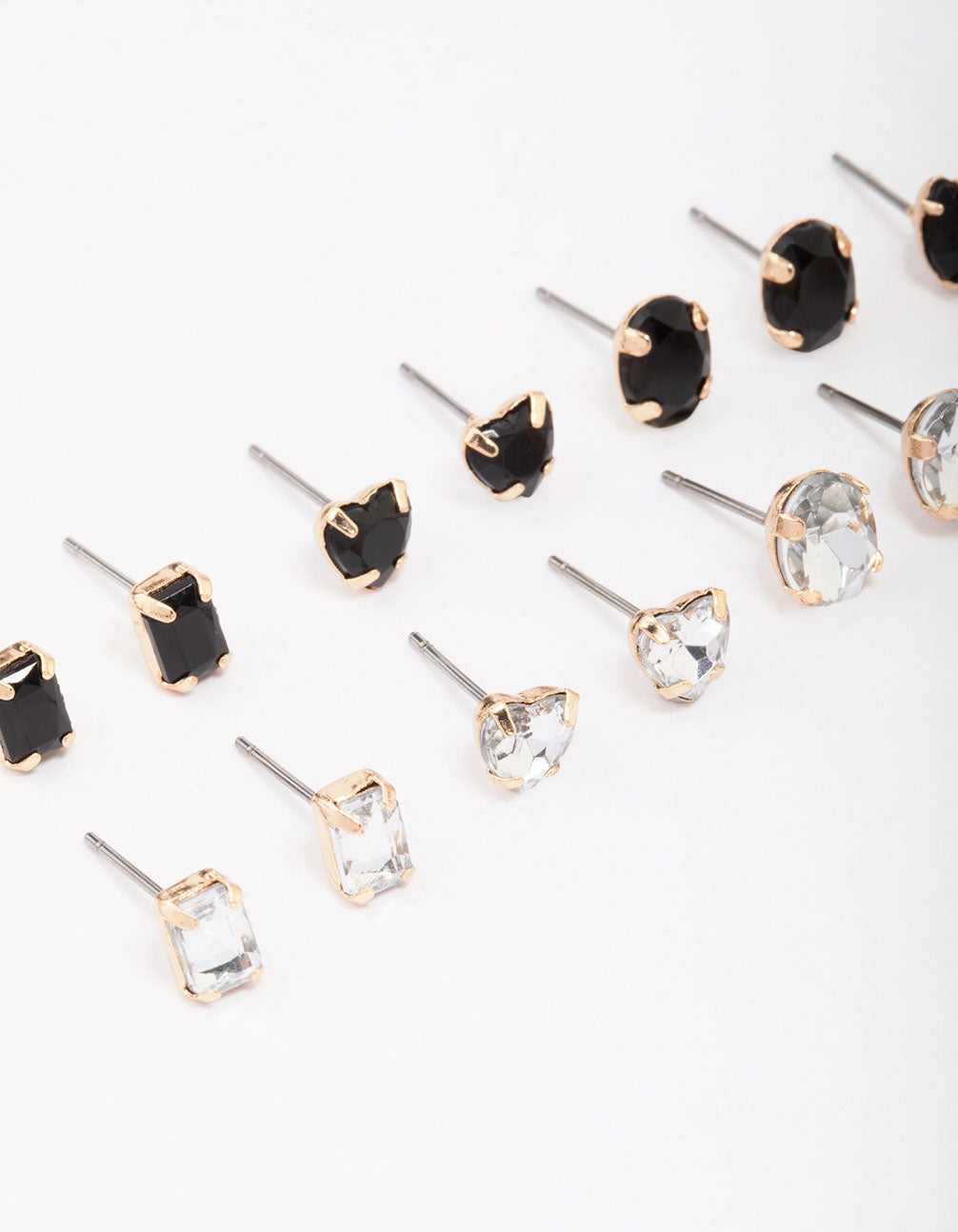 Create the stack of your dreams with this eight pack of black and diamante stud earrings.