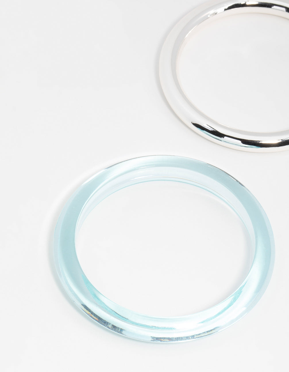 Add some fun to your style with this bangle duo! This set features one sleek silver bangle for a chic touch and a blue acrylic one to bring those ocean vibes.