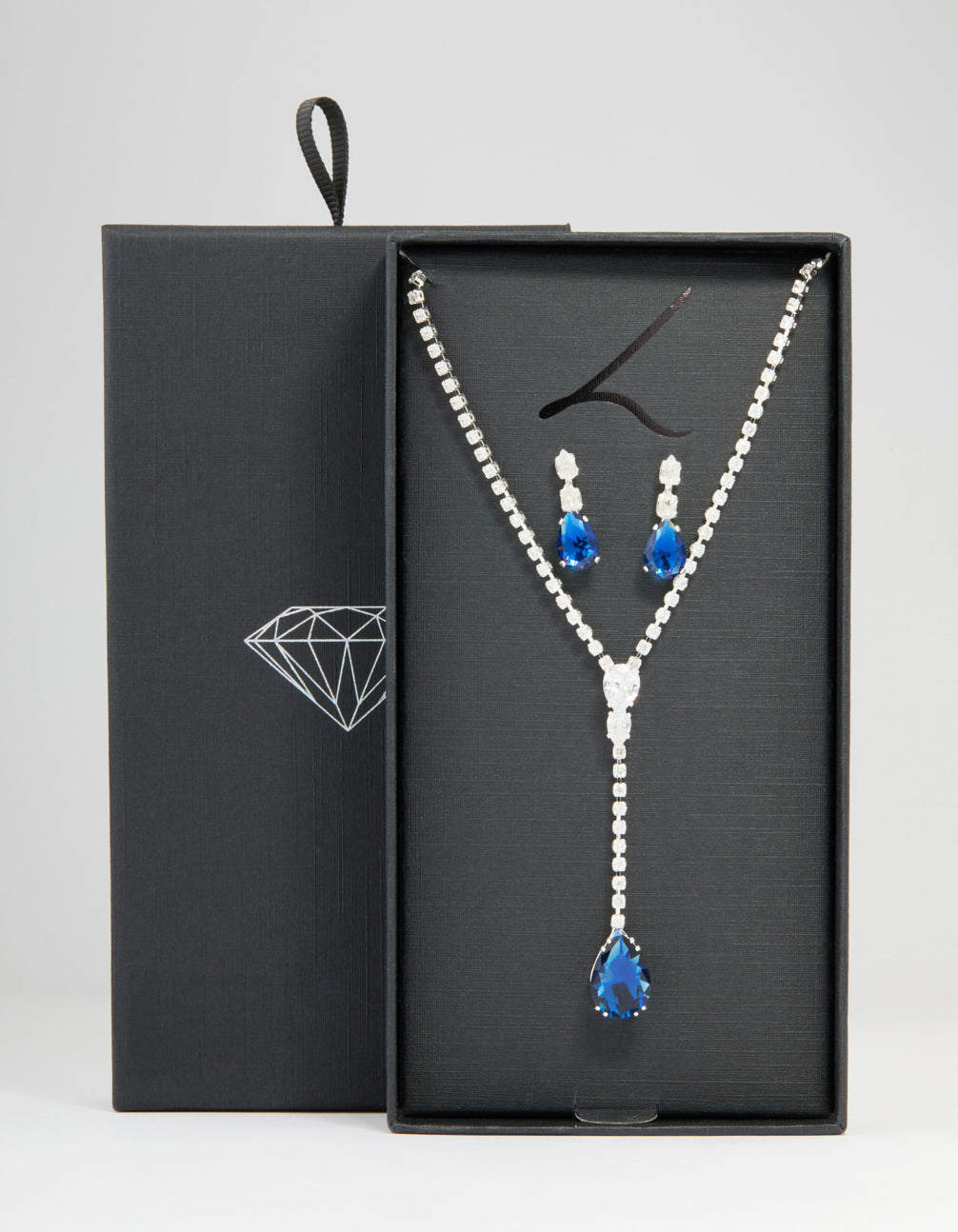 Silver Blue Cubic Zirconia Pear Y-Necklace & Earrings Set