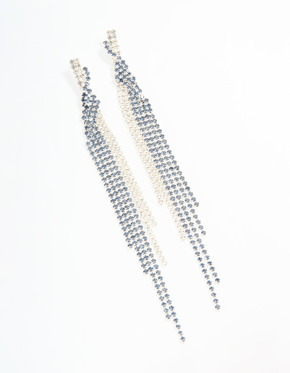 Silver Blue Diamante Twisted Chain Drop Earrings