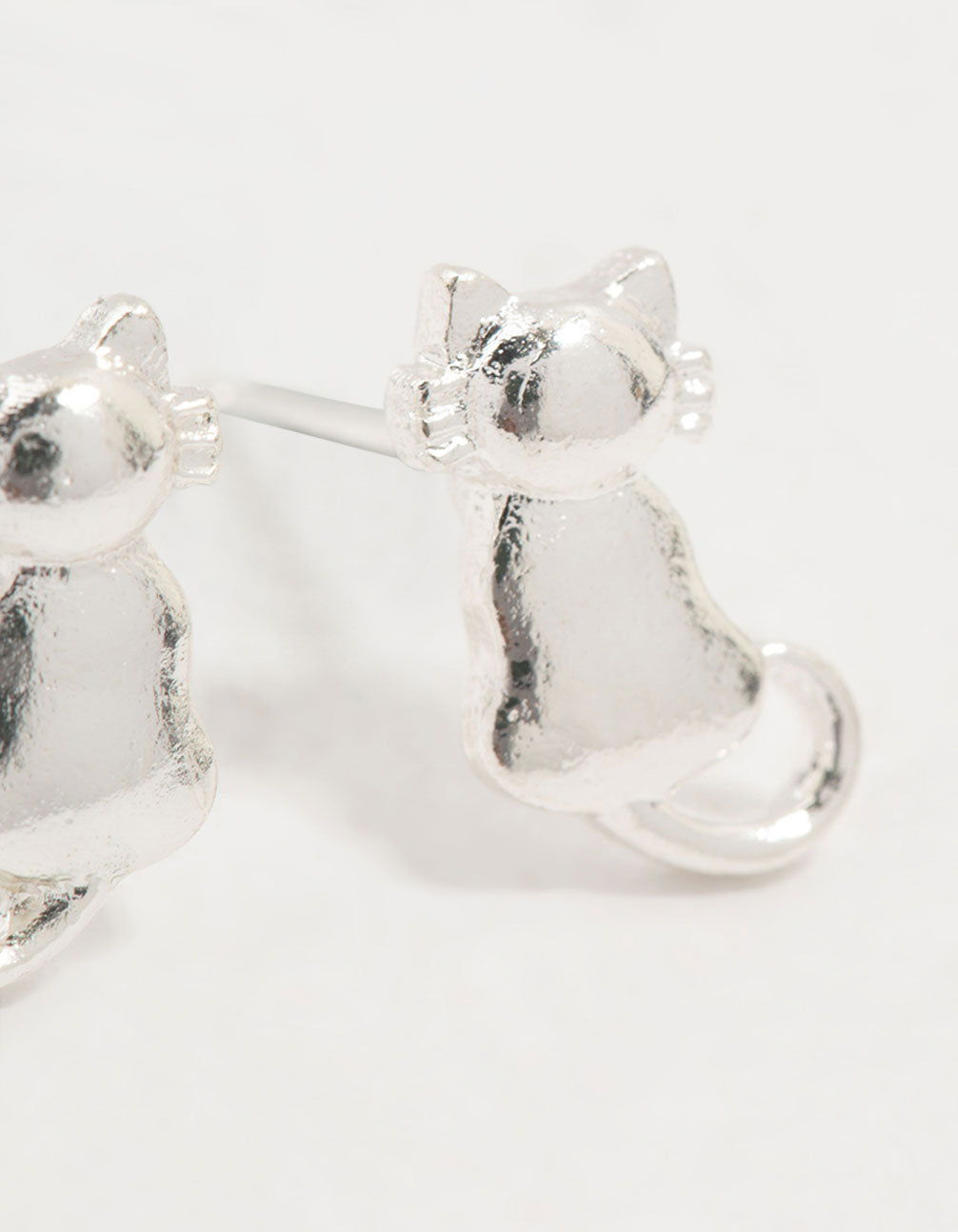 Add some adorable style with these silver-toned earrings! Featuring a cool cat design, they're perfect for a cute touch to your look.