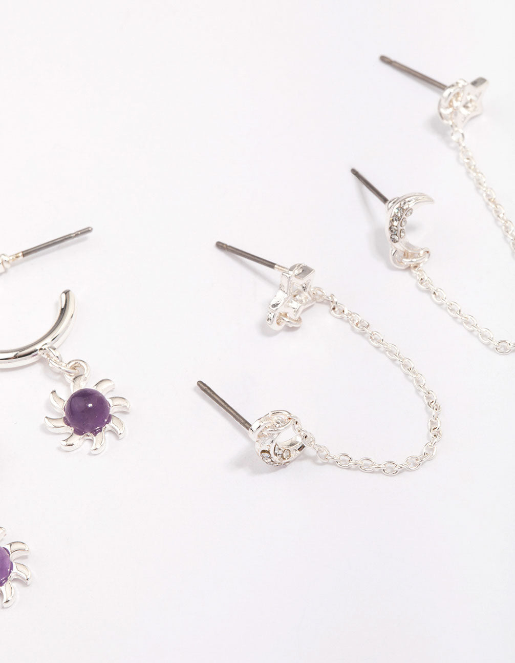 Silver Celestial Amethyst Chain Hoop Earring 4-Pack