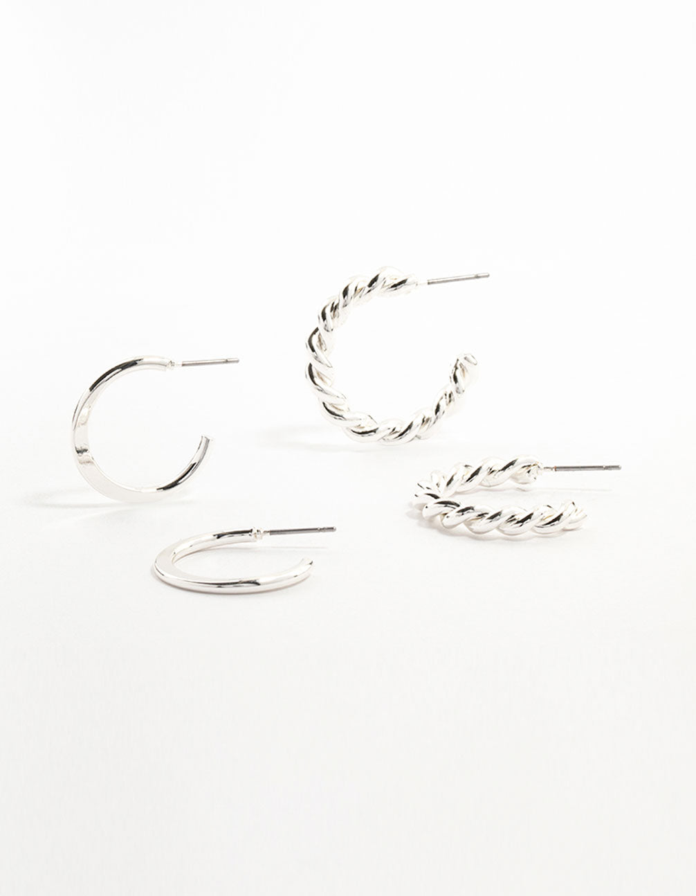Silver Clean & Twisted Hoop Earrings 2-Pack