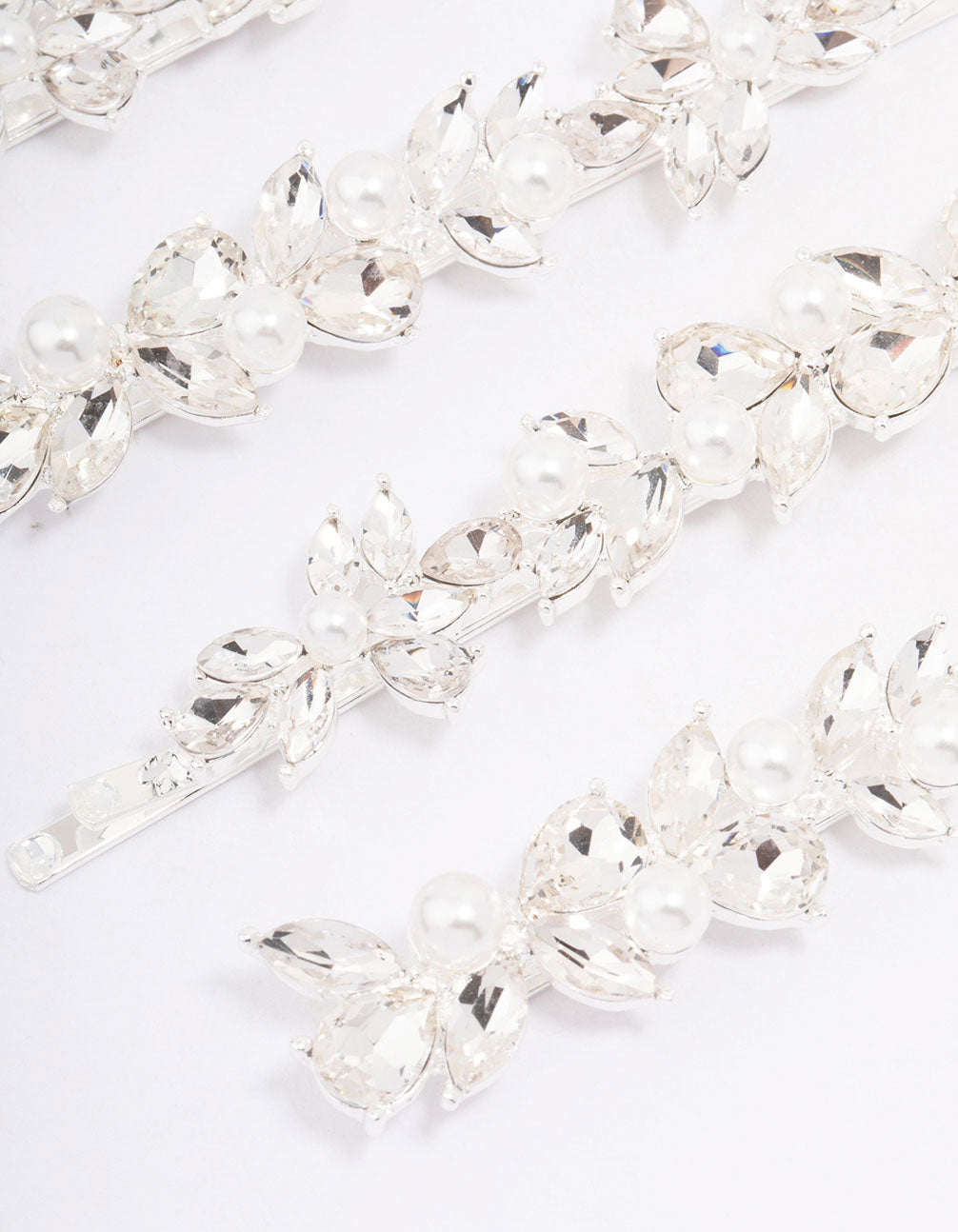 Add interest to your hairstyle with this set of silver-toned hair clips. This hair accessory pack includes six individual hair clips, each adorned with diamantes and pearls for an elevated look.