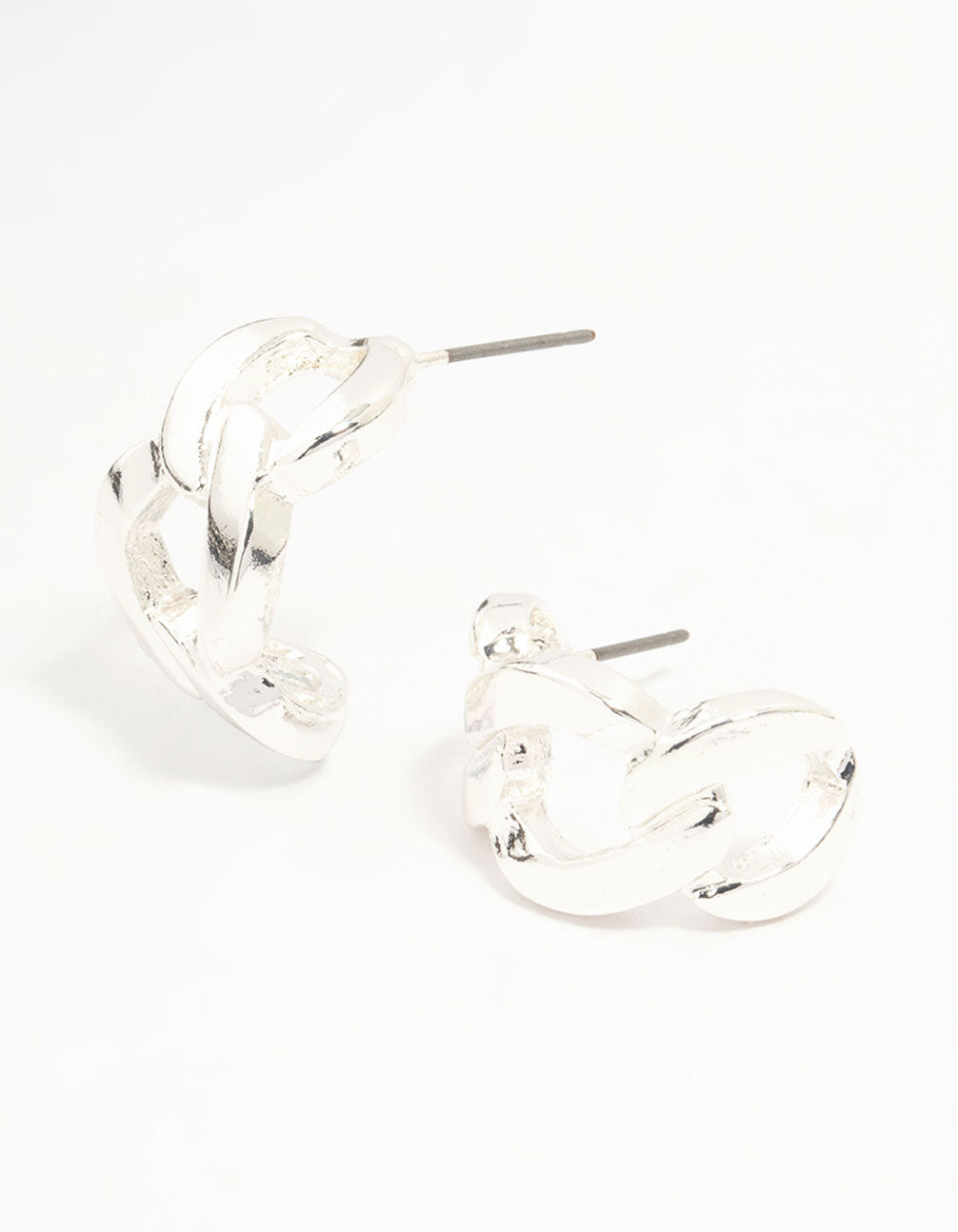 Upgrade your style with these Silver Cuban Link Hoop Earrings. They exude a refined, sophisticated vibe that effortlessly complements any outfit. The Cuban link design adds a playful twist to your look.
