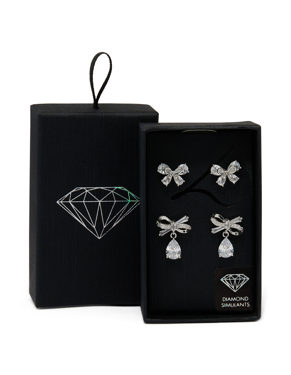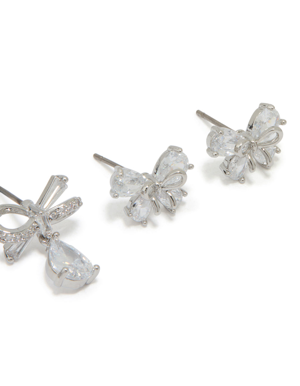 Silver Cubic Zirconia Bow Earrings 2-Pack
