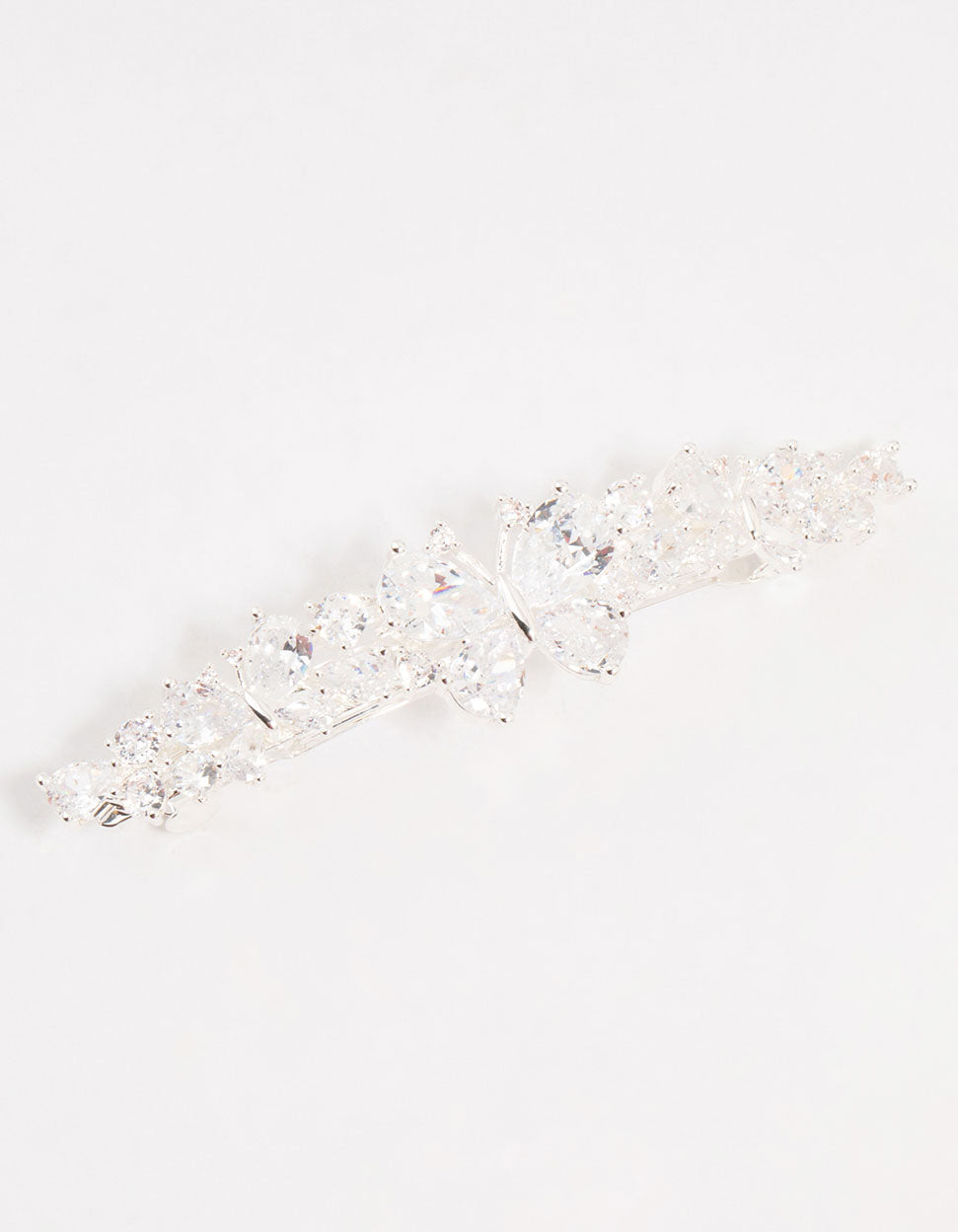 Silver Cubic Zirconia Butterfly Cluster Hair Clip