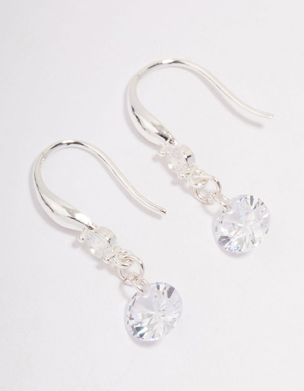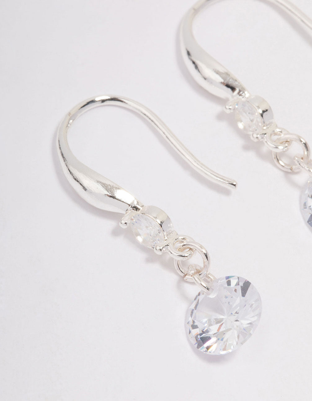 Elevate your ear stack with these simple, silver-toned drop earrings. These unique, dangle earrings feature a duo of cubic zirconia crystals — attached with an interlocking chain.