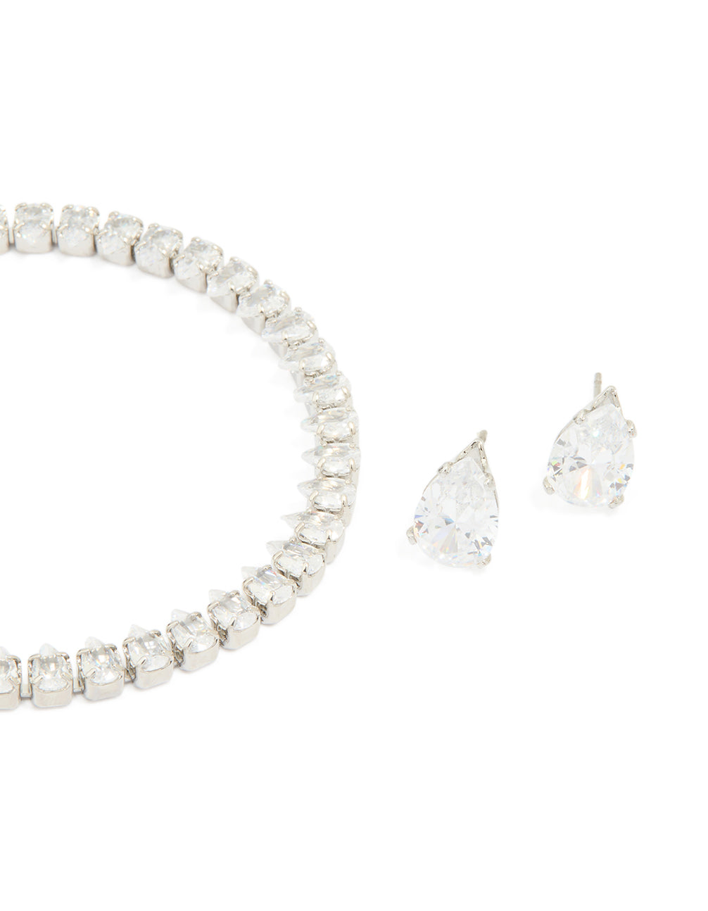 Silver Cubic Zirconia Earrings & Tennis Bracelet Set