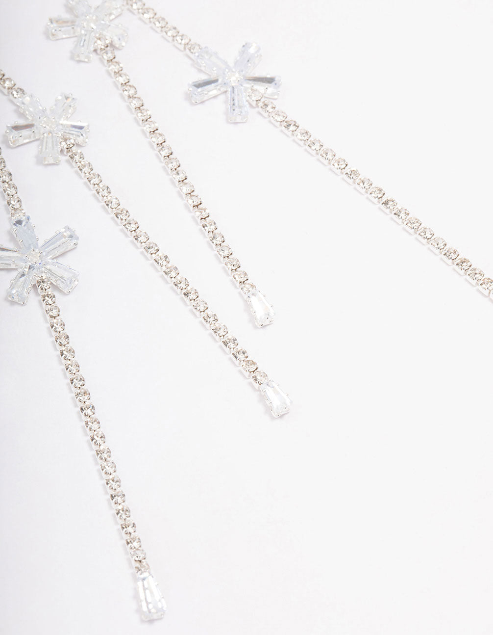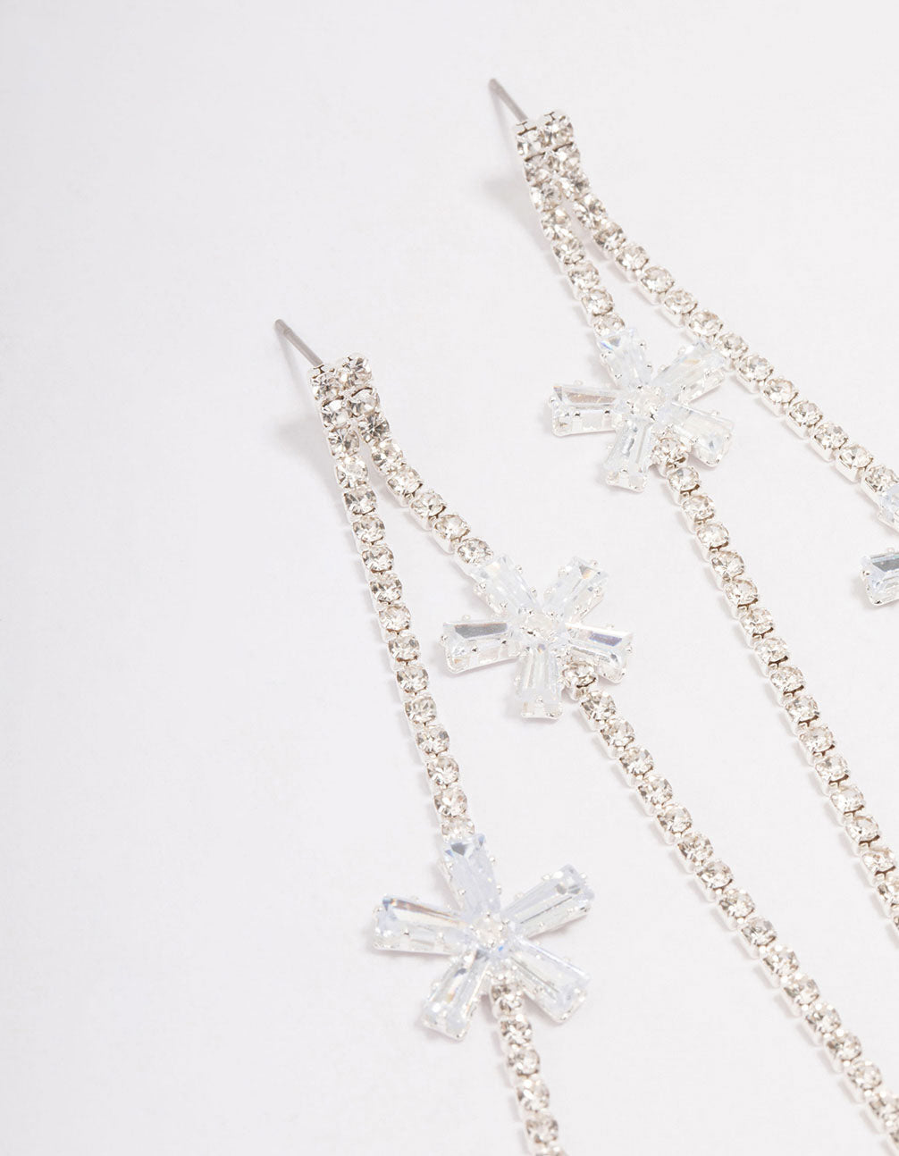 Add a premium touch to your ear stack with these stunning, silver-toned drop earrings. These elegant earrings feature a collection of floral-shaped, cubic zirconia crystals — perfect for completing any outfit.