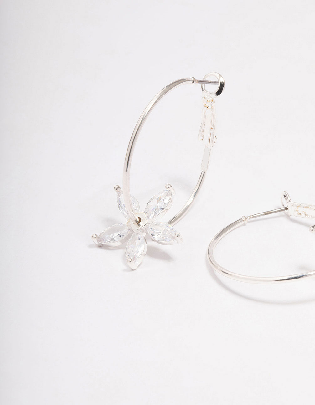 Add a premium touch to your ear stack with these stunning, silver-toned hoops. These simple hoop earrings feature a fine silhouette, adorned with floral-shaped cubic zirconia crystals — perfect for completing any outfit.
