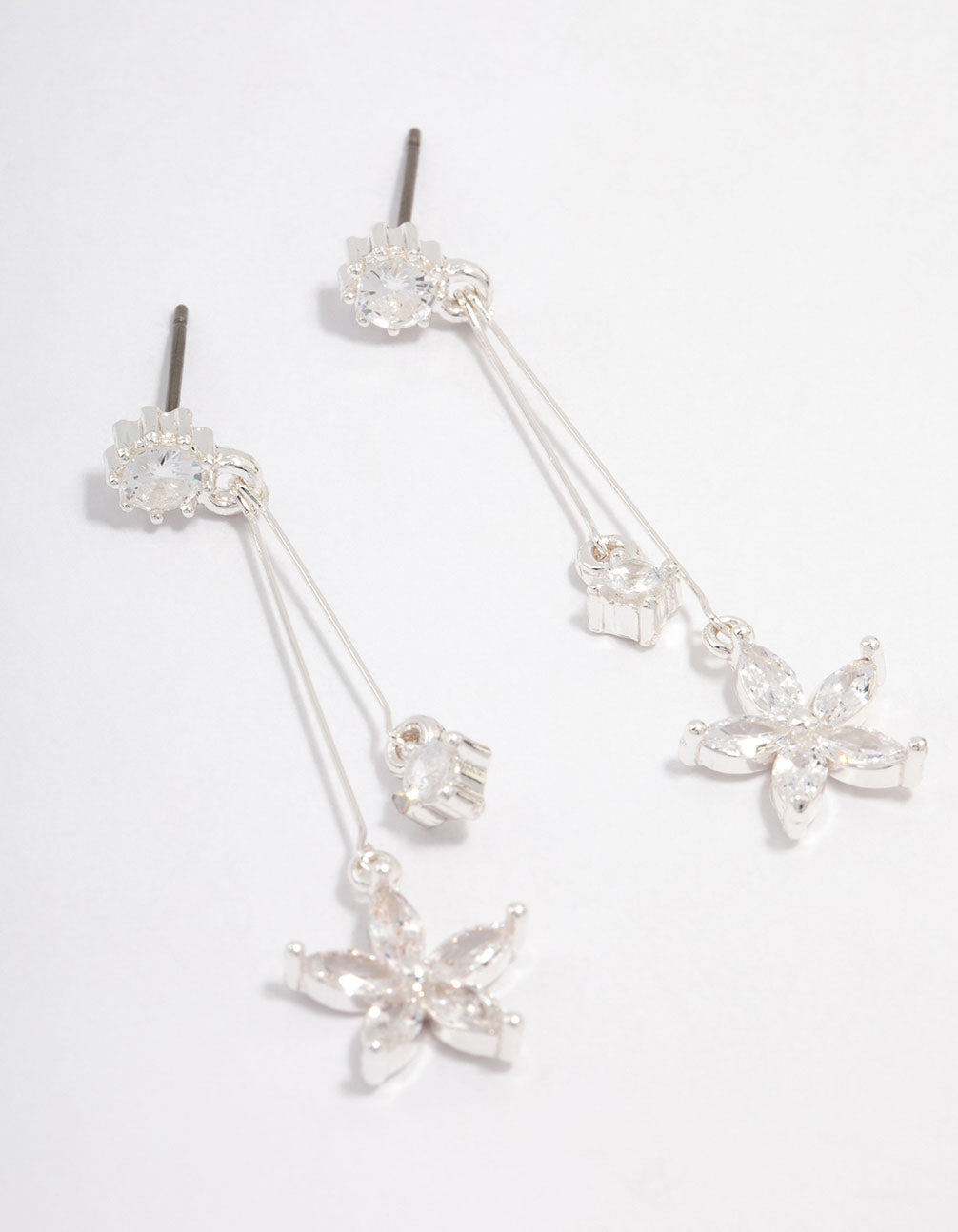 Silver Cubic Zirconia Flower Waterfall Drop Earrings
