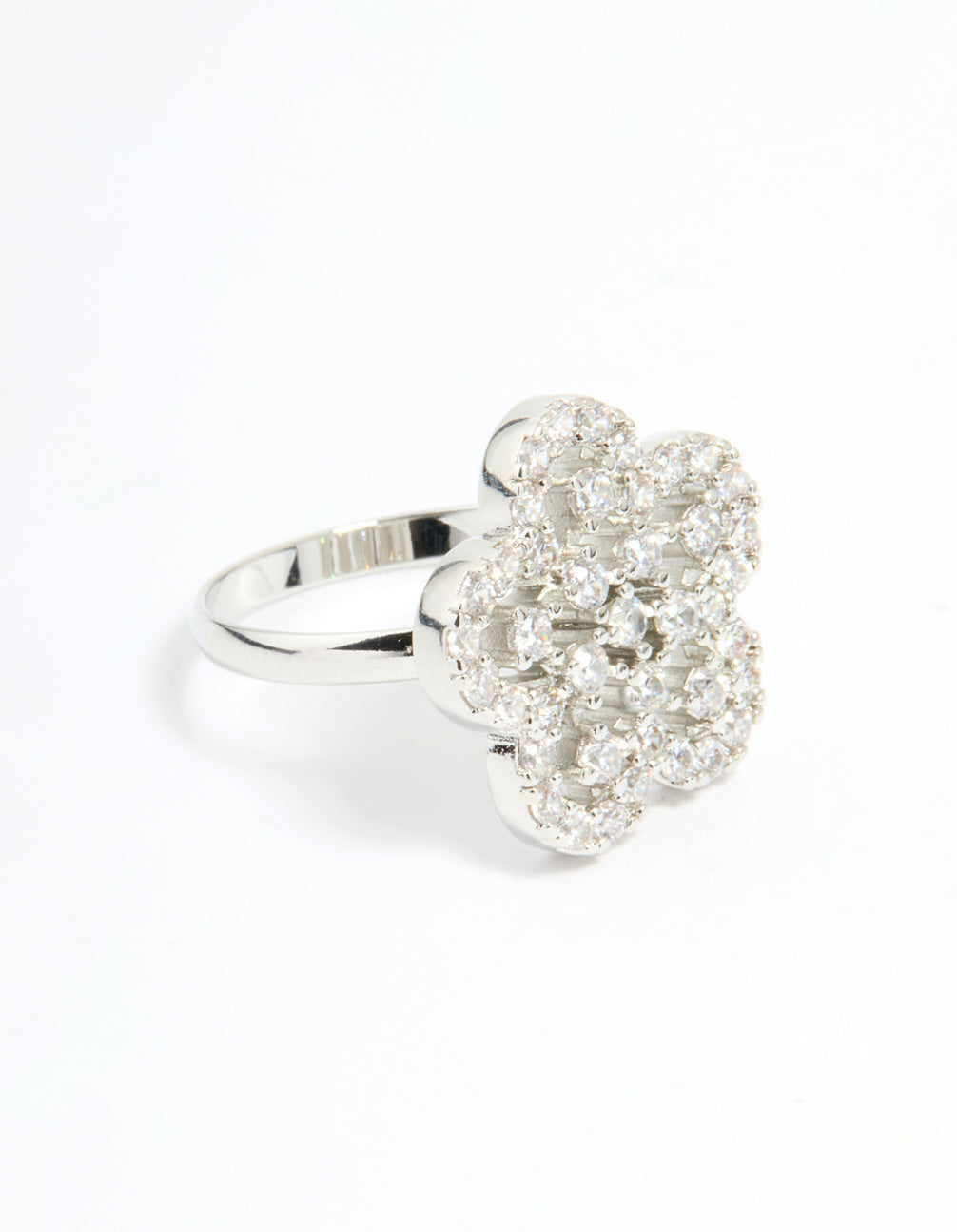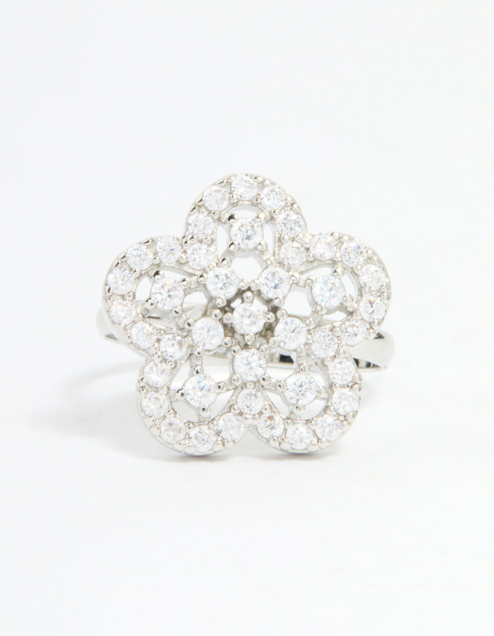 Make a bold statement with this Silver Cubic Zirconia Statement Flower Ring. This ring features a dazzling floral design crafted from cubic zirconia crystals, adding a touch of sparkle to any outfit. Its silver finish gives it a sleek, polished look that's both modern and timeless. Perfect for parties, weddings, or even a casual brunch, this statement ring elevates any ensemble effortlessly. Pair it with a flowy dress for a romantic vibe or wear it with jeans and a blazer to add a touch of glam to your everyday style. Whether you're treating yourself or searching for the perfect gift, this flower-shaped ring is a stunning choice that's sure to turn heads.