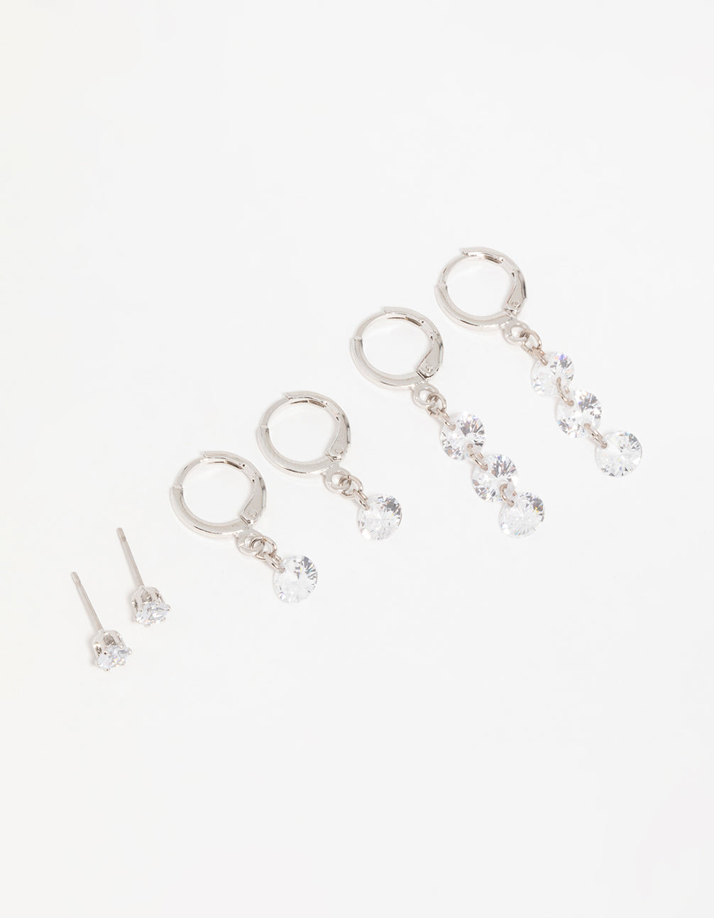 Silver Cubic Zirconia Stud & Huggie Earrings 3-Pack