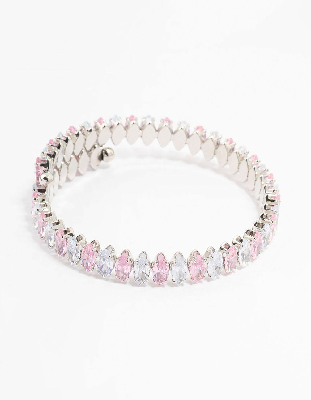 Silver Cubic Zirconia Wrapped Pink Bracelet