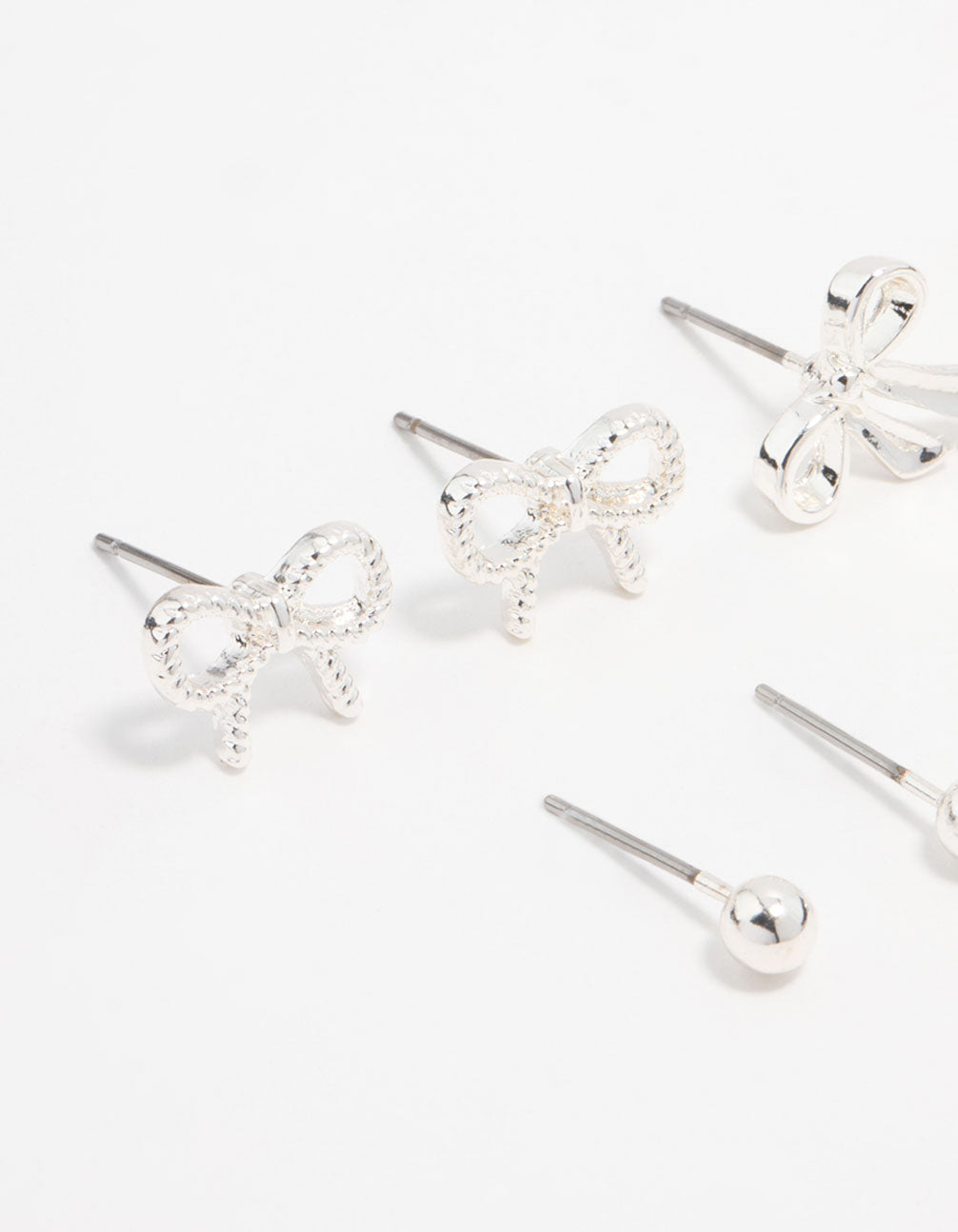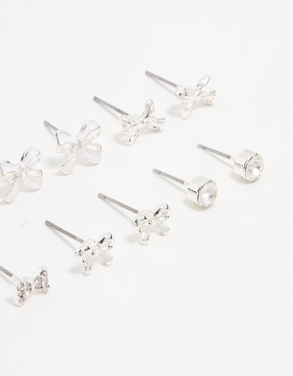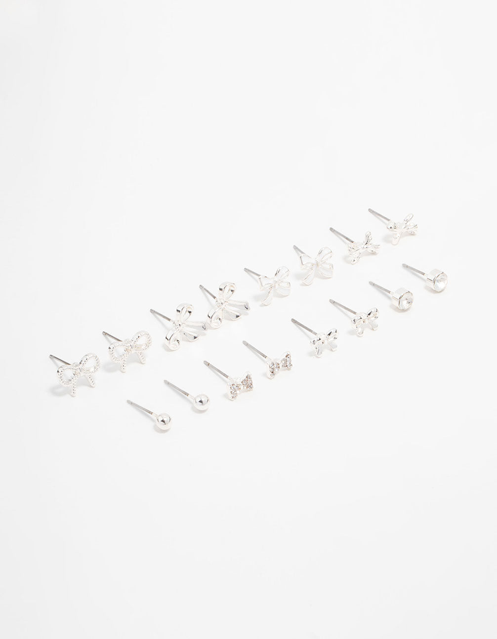 Silver Diamante & Bow Stud Earrings 8-Pack