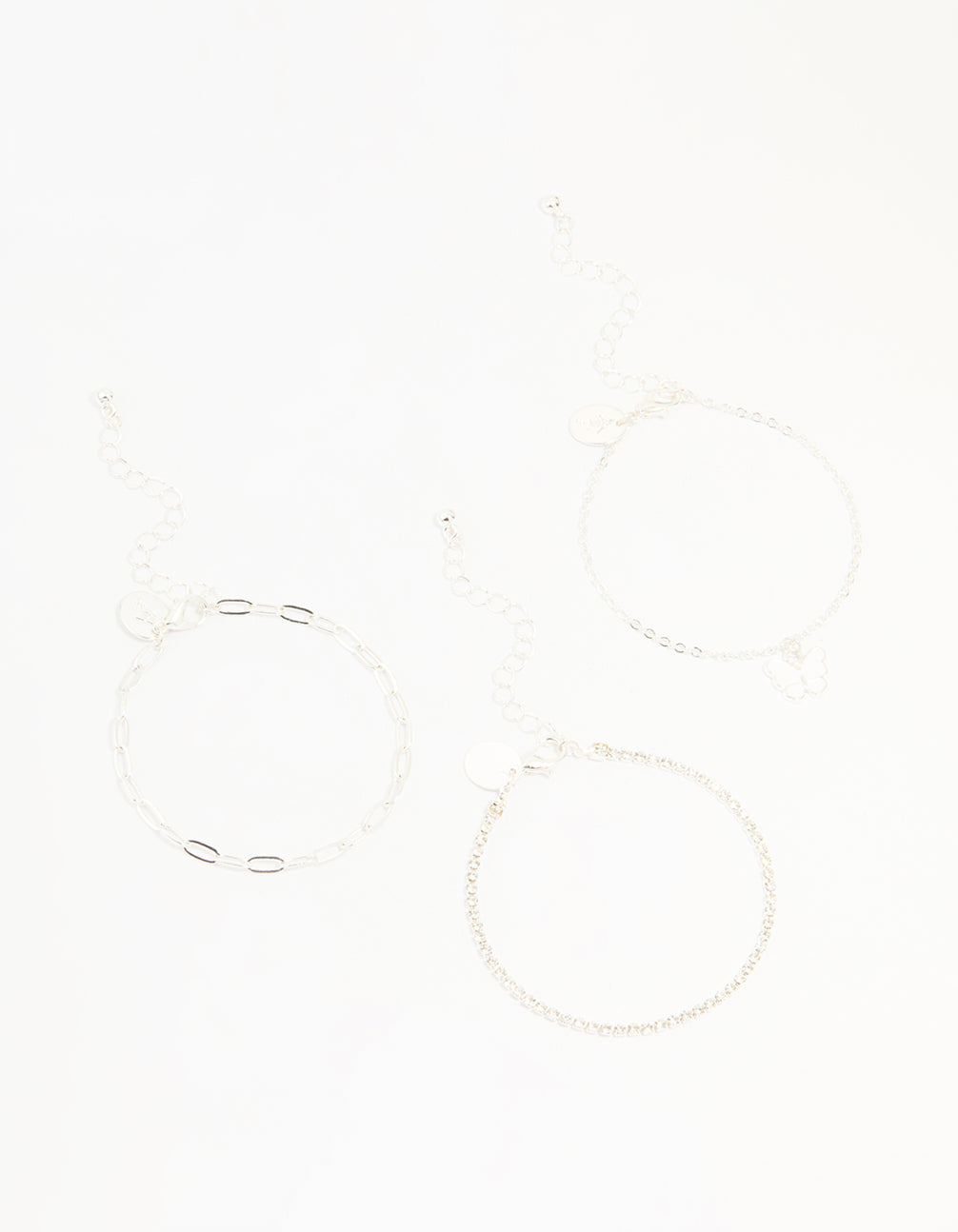 Silver Diamante Chain & Butterfly Bracelets 3-Pack