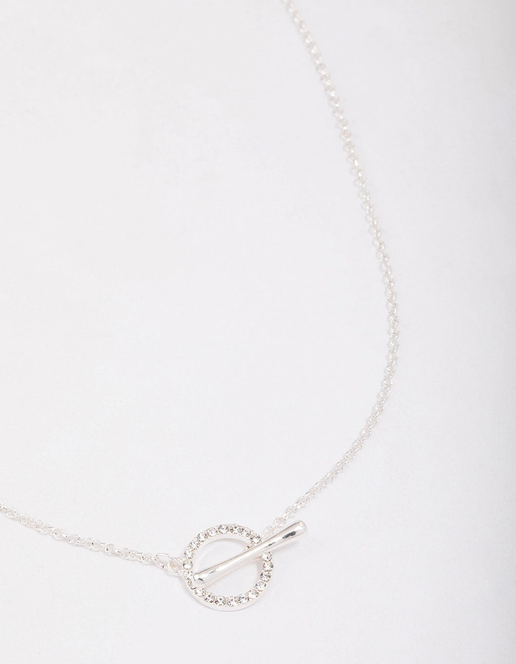 Silver Diamante Circle Bar Link Necklace Silver Diamante Circle Bar Link Necklace