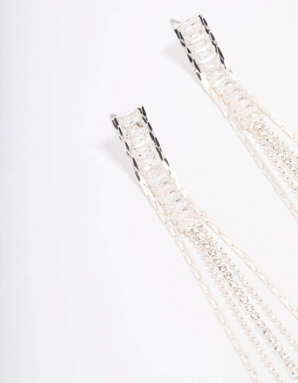 These elegant drop earrings feature a cupchain design adorned with sparkling diamantes for a glamorous touch.