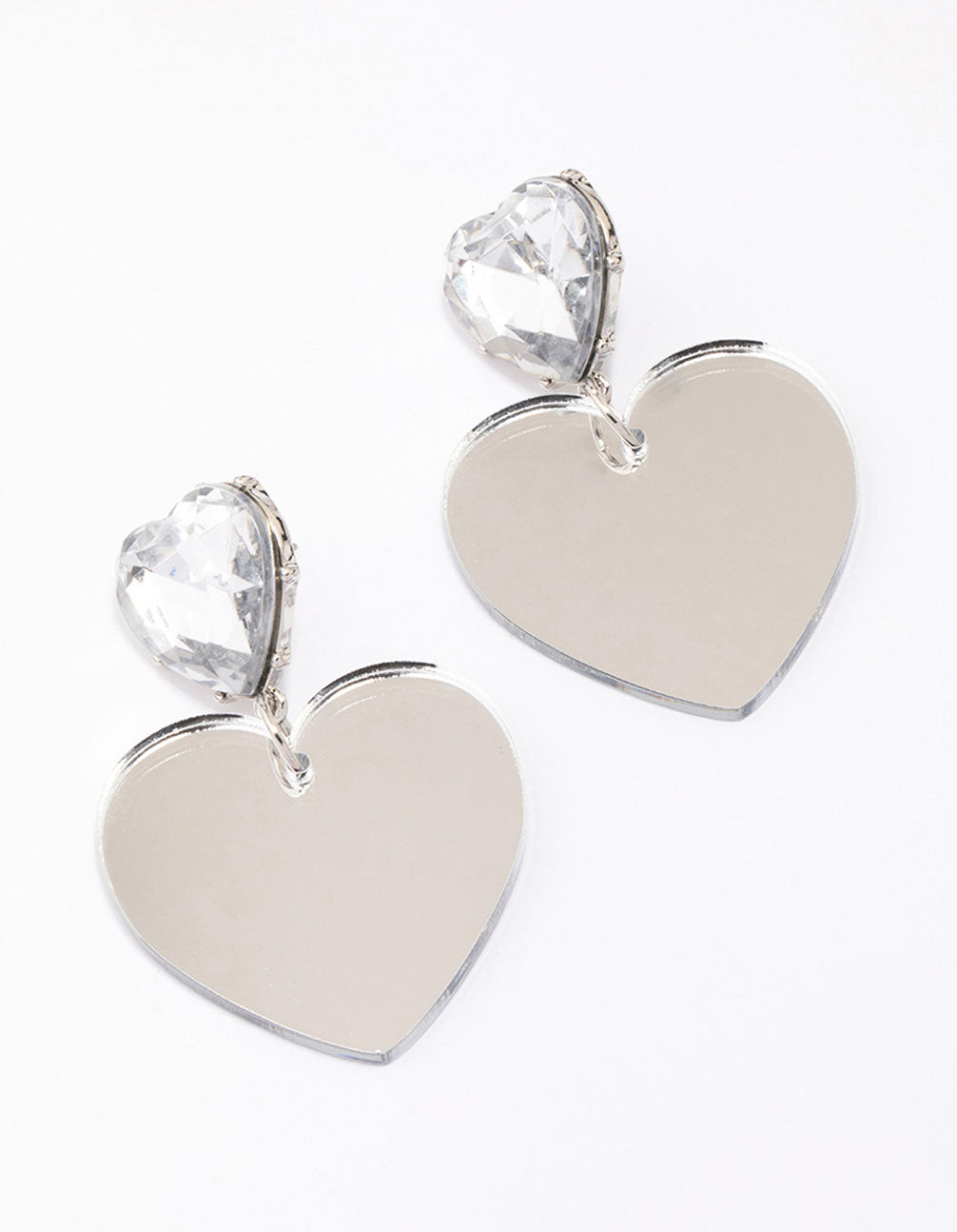 For a lovable touch to your stack, style these silver-toned drop earrings. These unique statement earrings feature a reflective heart-shaped silhouette, adorned with a diamante on the top.
