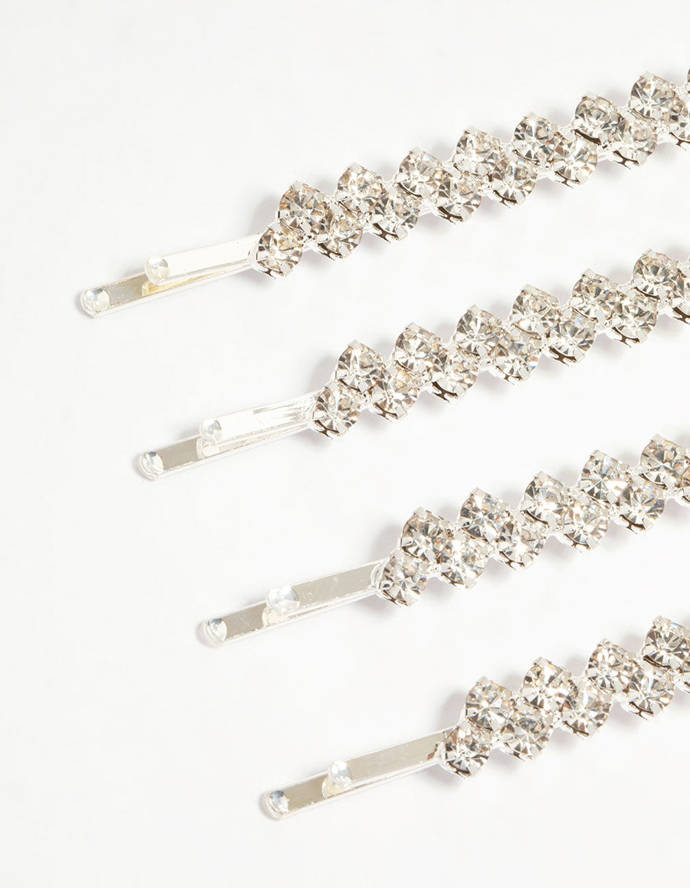 Upgrade your bridal look with our Silver Diamante Dressy Hair Slides 4-Pack! These stunning slides will add sparkle and sophistication to any hairstyle. Crafted from silver-toned metal and adorned with diamantes, they ensure you shine at every event.
