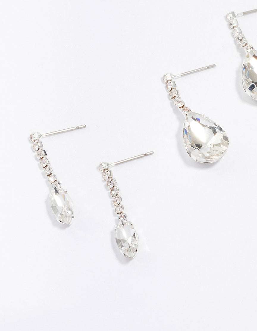 Have an an abundance of sparkly choice with this gorgeous pack of three earrings, including three different drop designs featuring gorgeous shimmery diamante crystals and pearl accents and little crystals.