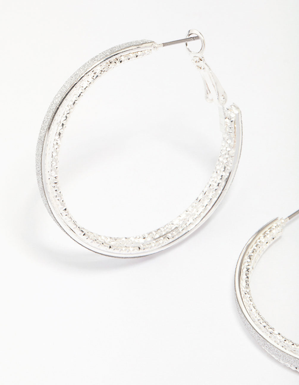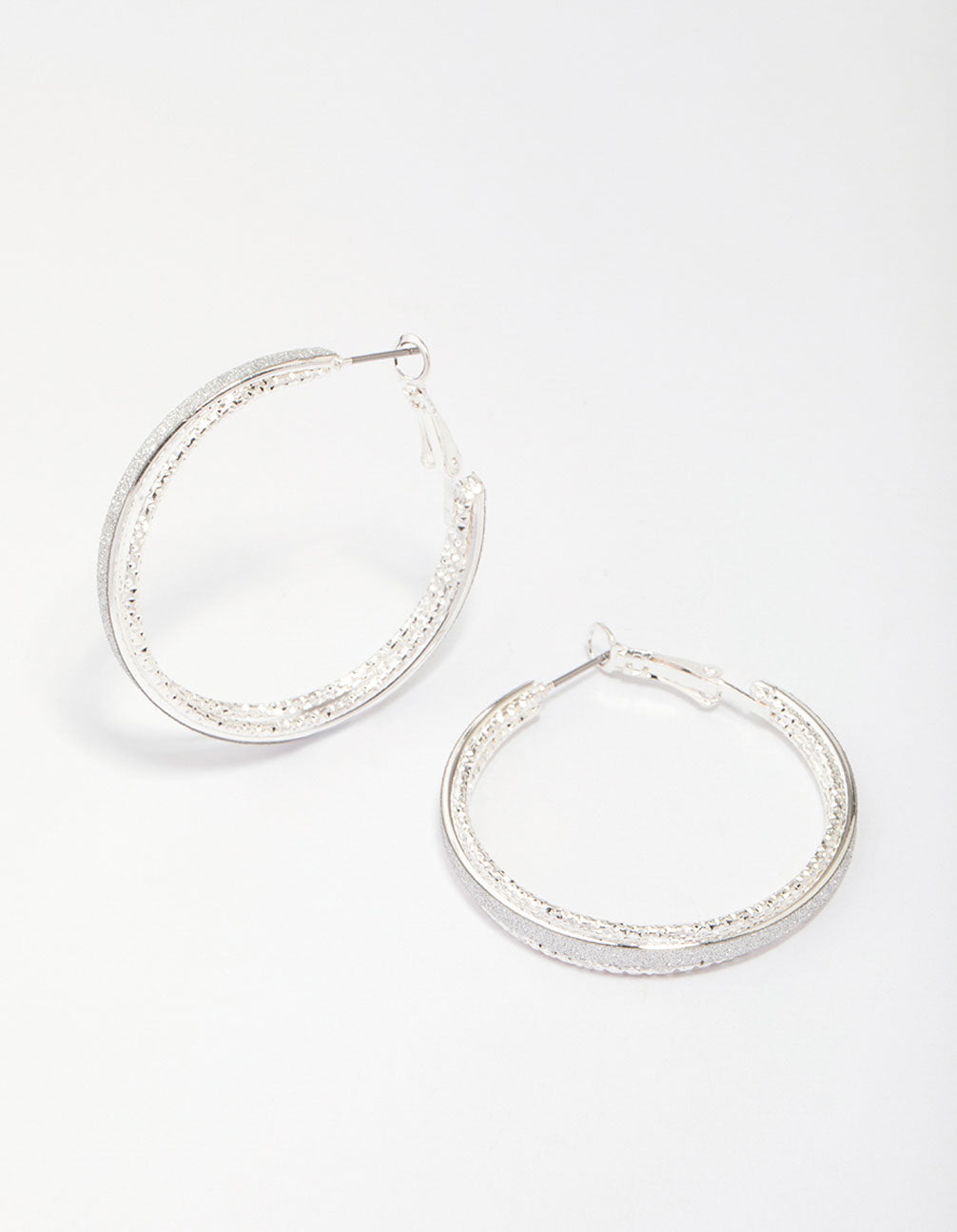 Create the ear stack of your dreams with these stunning, silver-toned hoops. These large hoop earrings feature a thin profile, encrusted with glamorous diamantes for an eye-catching finish.