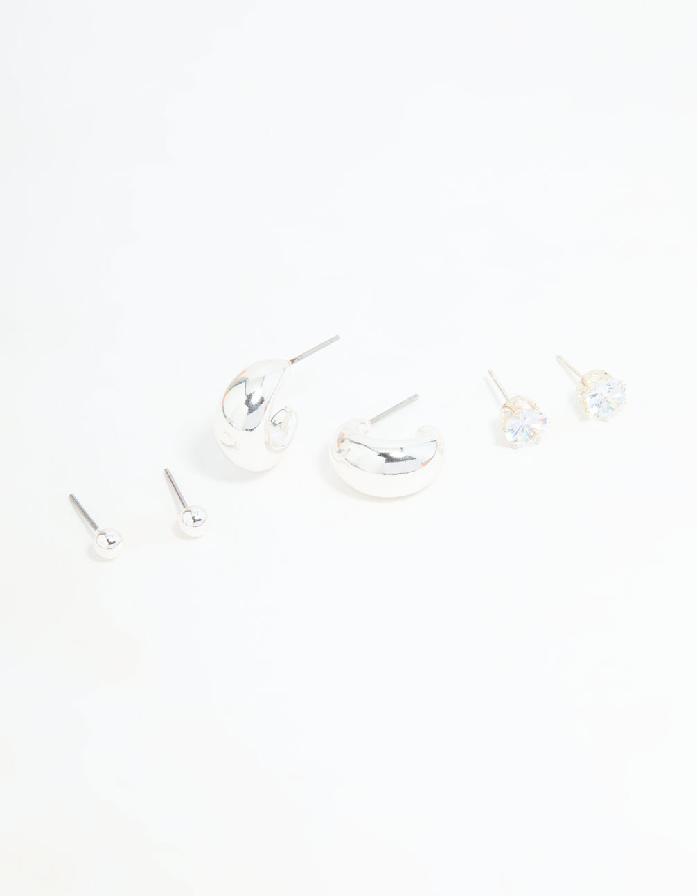 Silver Diamante Teardrop Stud & Drop Earrings Pack