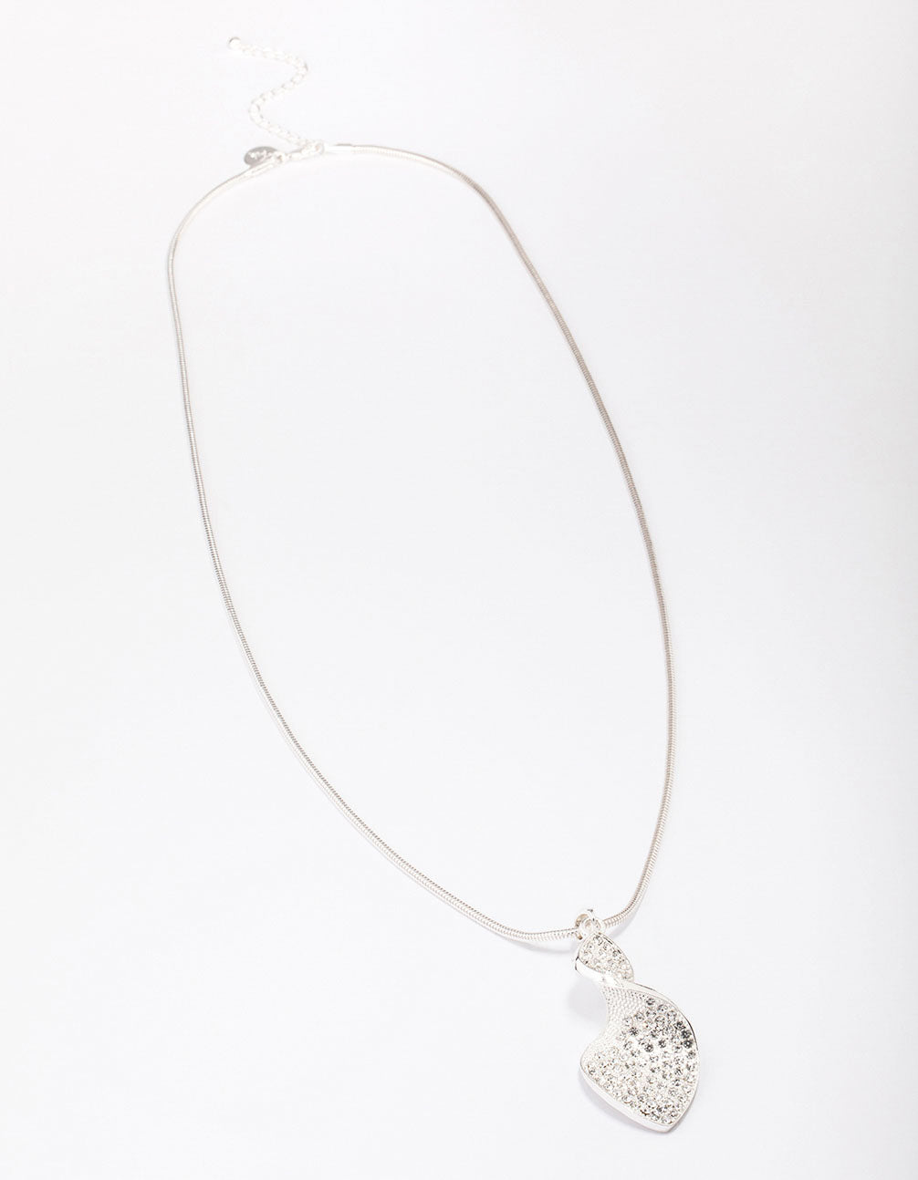 Add interest to your neckline with this stunning, silver-toned pendant necklace. This unique pendant features a fine chain, adorned with a large twisted charm - encrusted with diamantes for a stand-out finish.