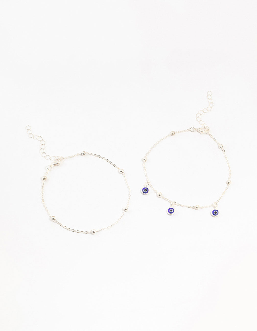 Silver Evil Eye Anklets 2-Pack Silver Evil Eye Anklets 2-Pack