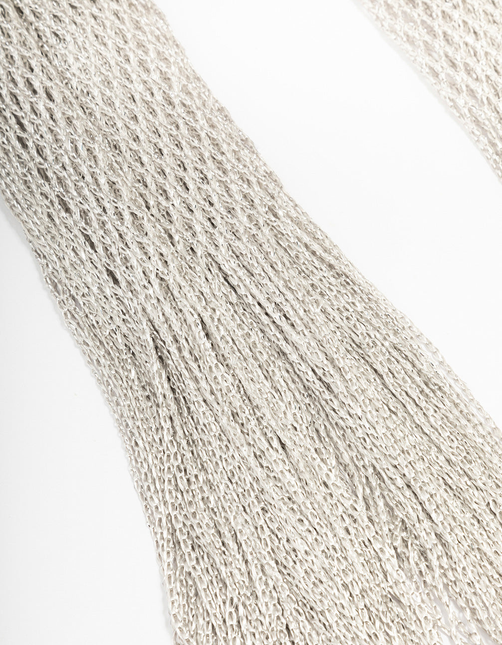 This stylish silver scarf features a diamante-embellished finish, perfect for adding a touch of glamour to any outfit.