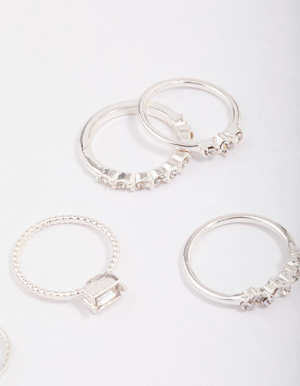 Curate your stack with this set of stunning silver stacking rings, perfect for adding an embellished touch to your outfit.