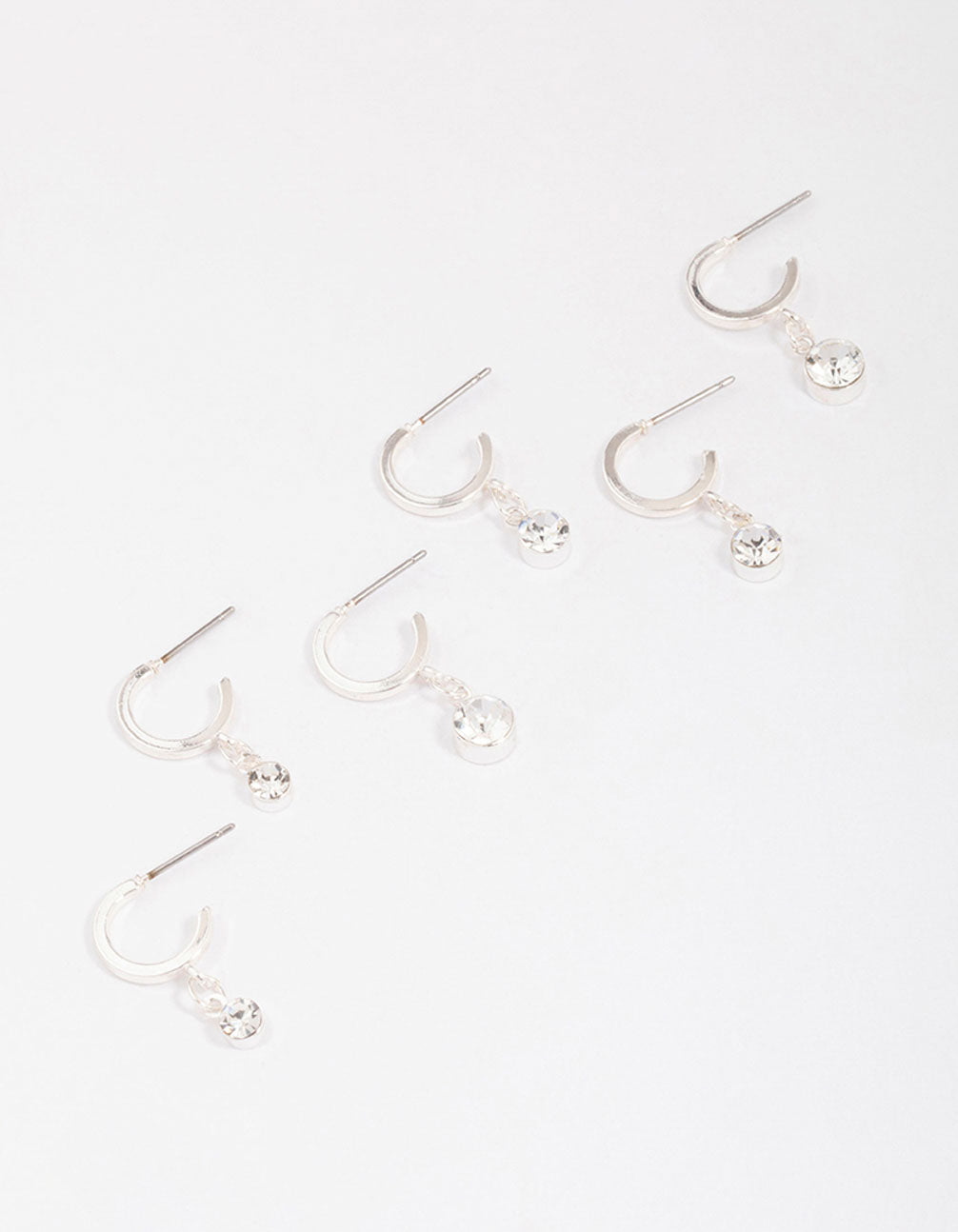 Silver Graduating Diamante Drop Huggie Earring 3-Pack