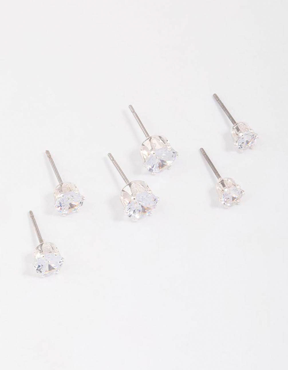 This earring pack contains three pairs of stud earrings, each adorned with varying sizes of diamantes for a glamorous finish.