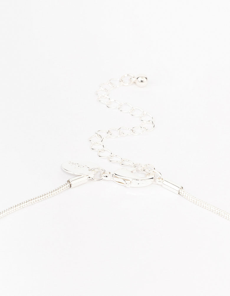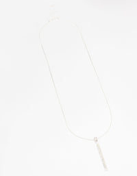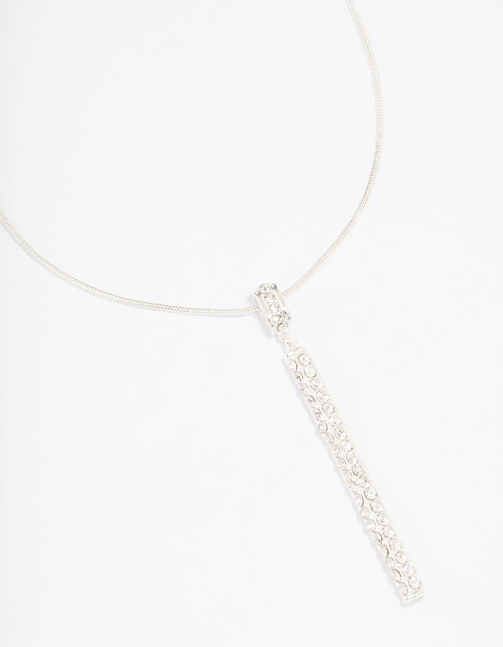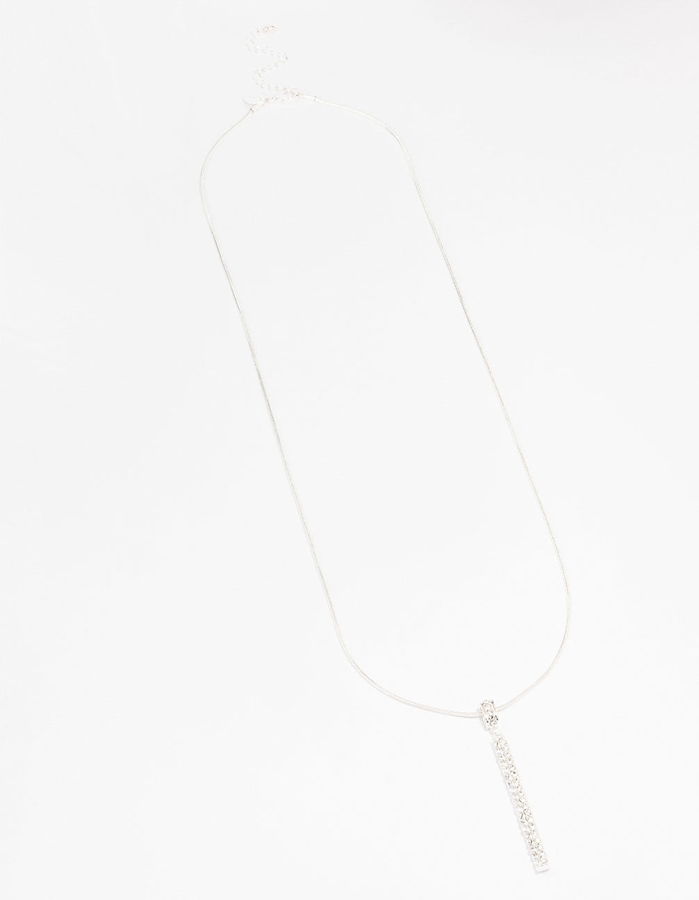 This long pendant necklace features a stunning silver setting, adofrned with a long dangle pendant.