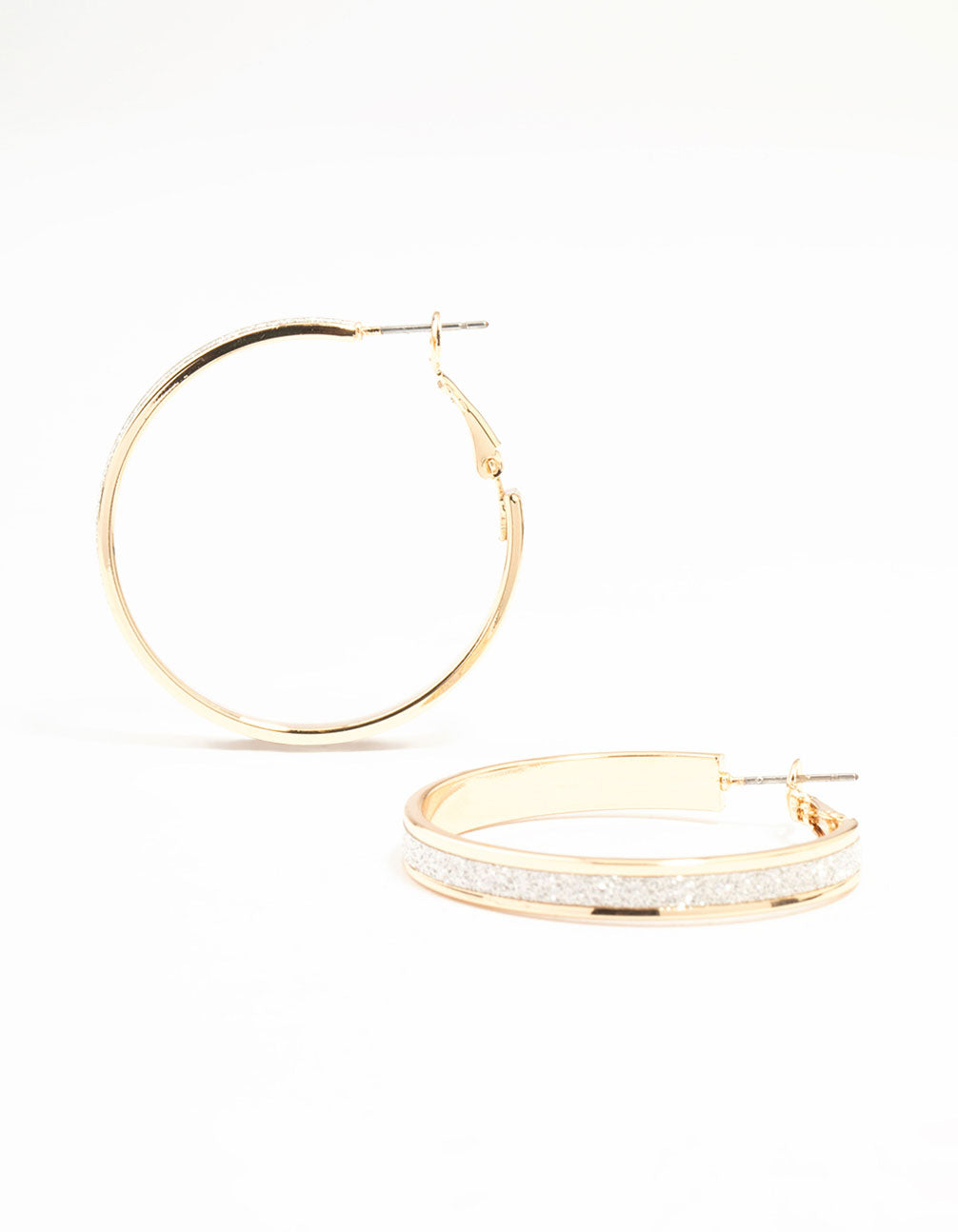 Dazzle with these glittery hoop earrings. These chic hoops catch the light with the pretty glitter design. Whether you're dressing up or keeping it casual, these stylish stunners will have any ensemble shining.