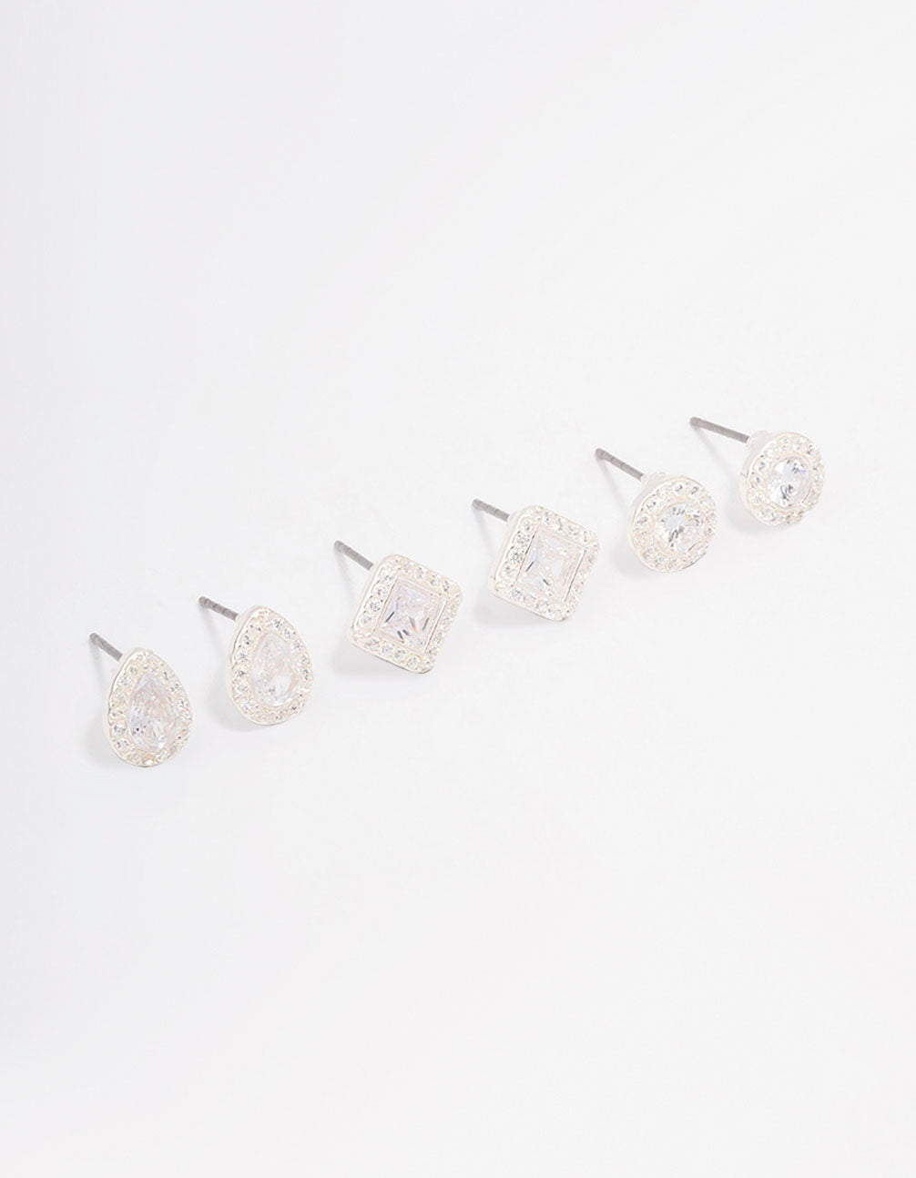 Silver Mixed Cubic Zirconia Stud Earring 3-Pack