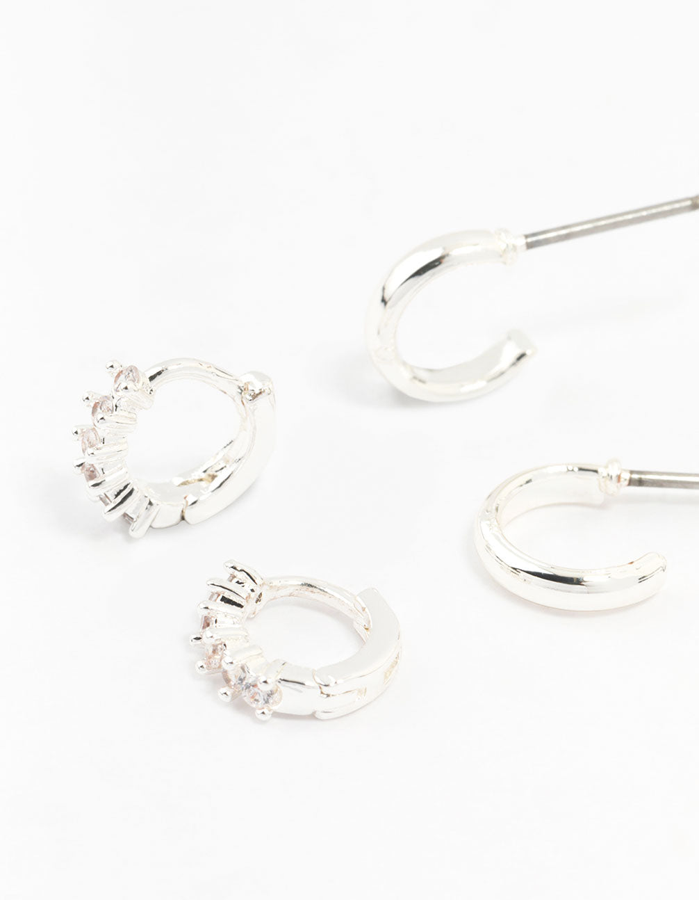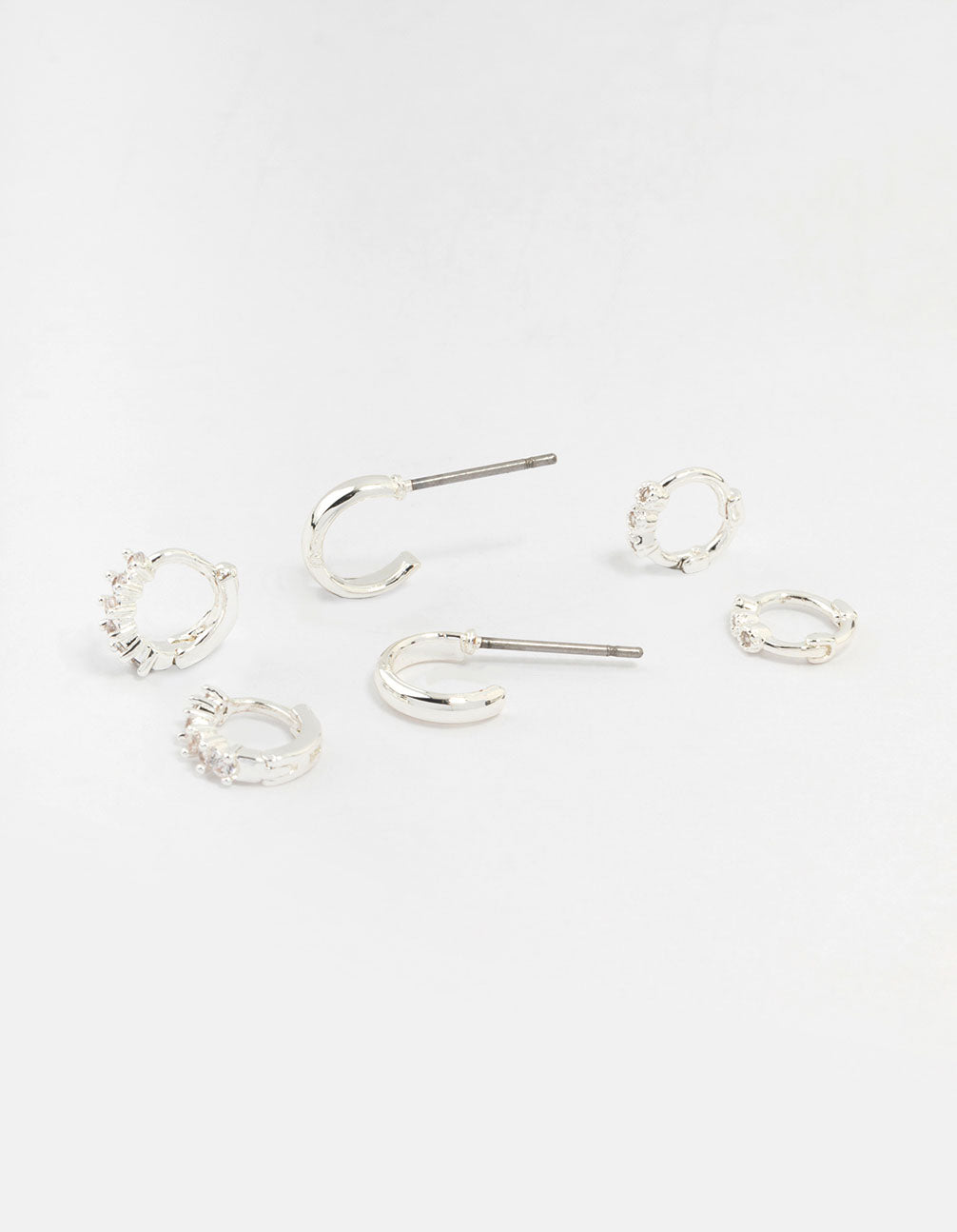 Silver Mixed Diamante Huggie Hoop Earrings 3-Pack
